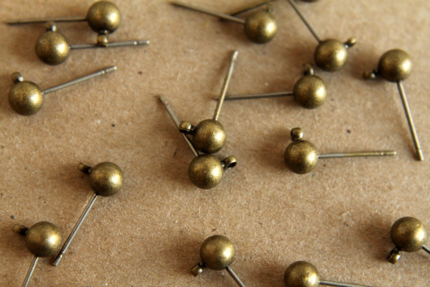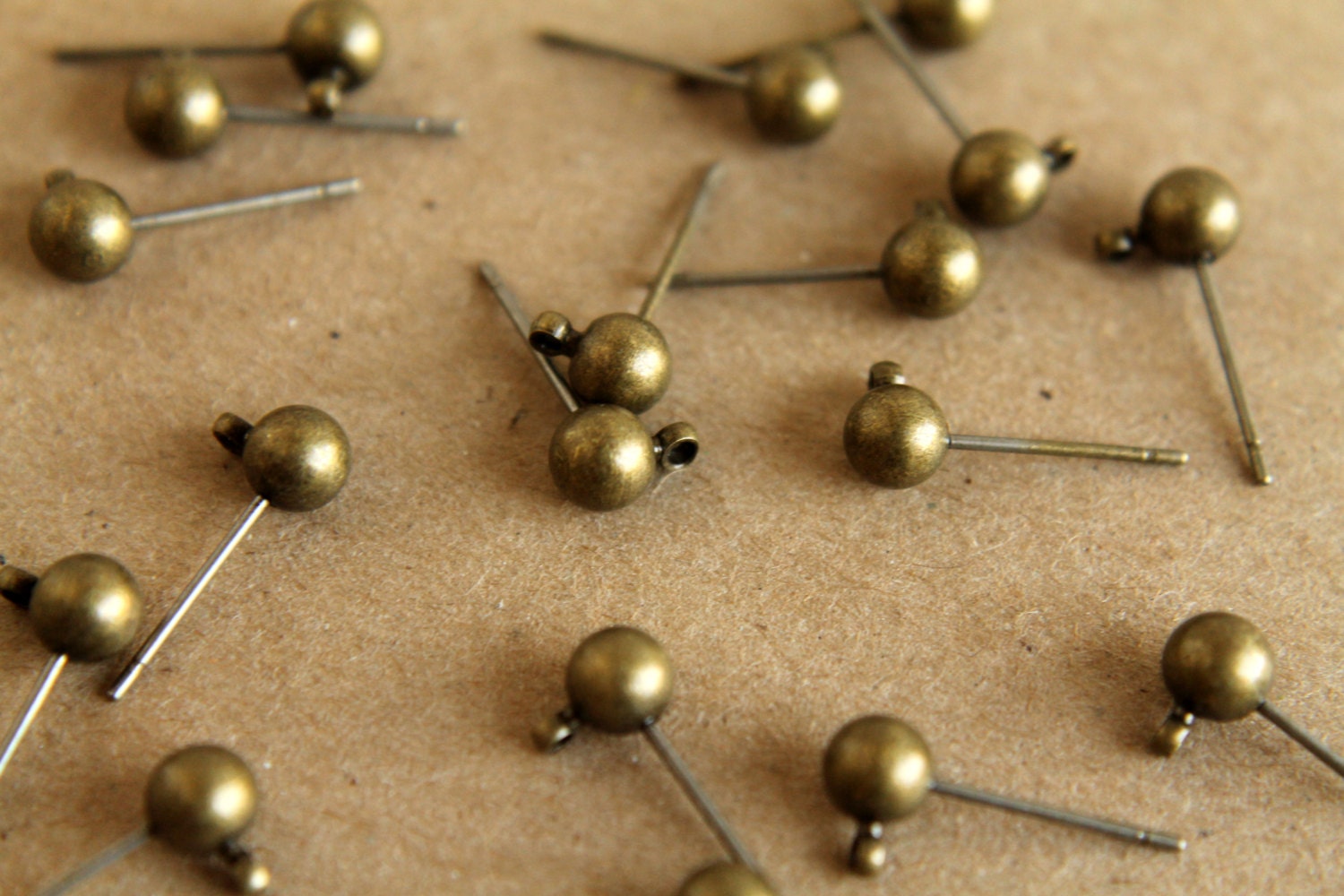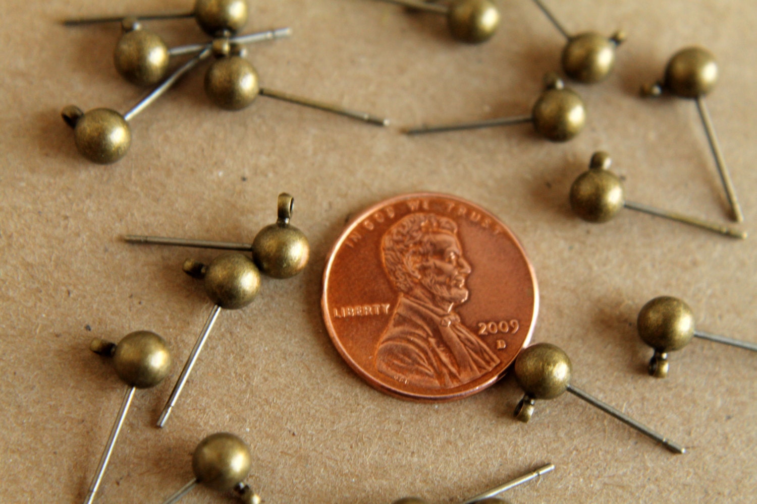 Antique bronze ball end earring posts. The balls are brass and the pins are stainless steel. They have a loop on the end of the ball. They are nickel free.