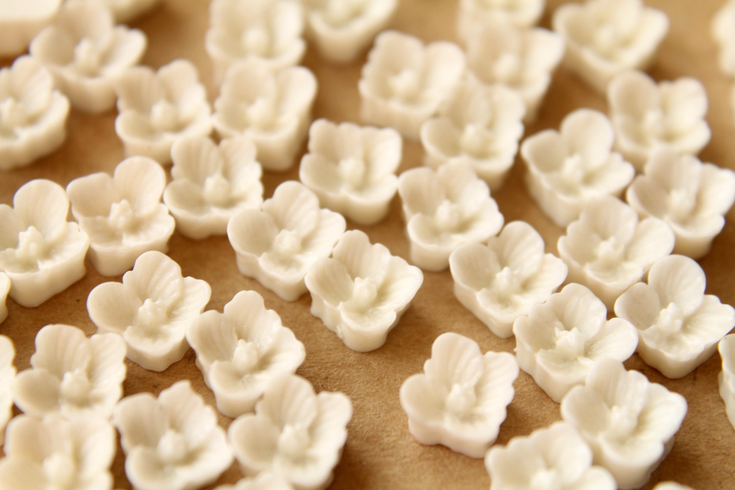 10 pc. White Sakura Blossom Cabochon 7mm | RES-448