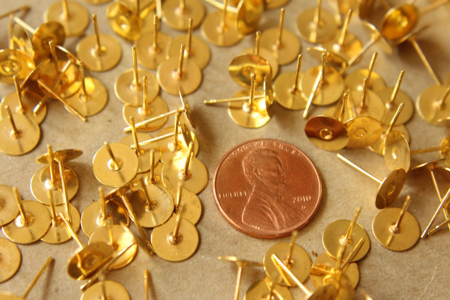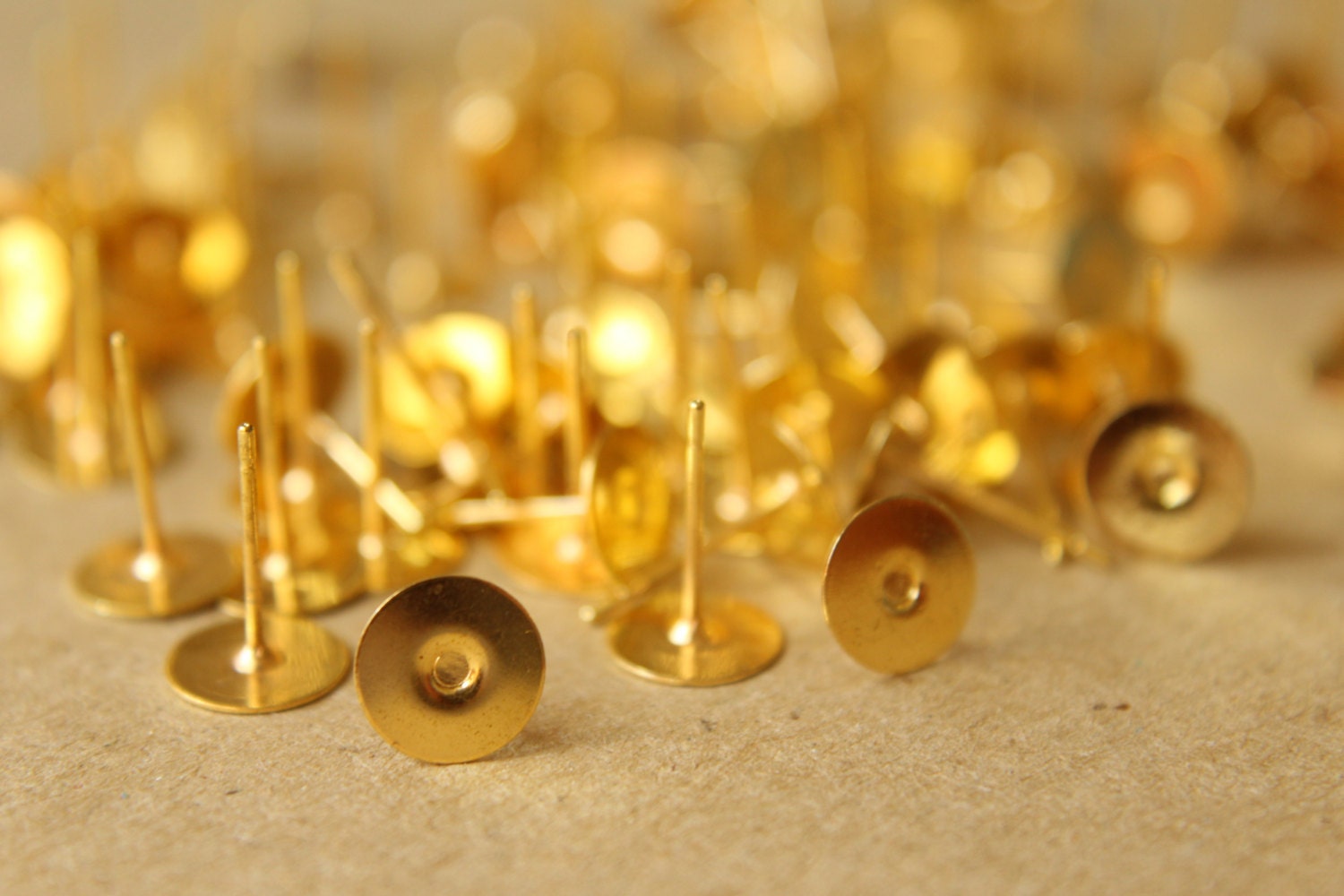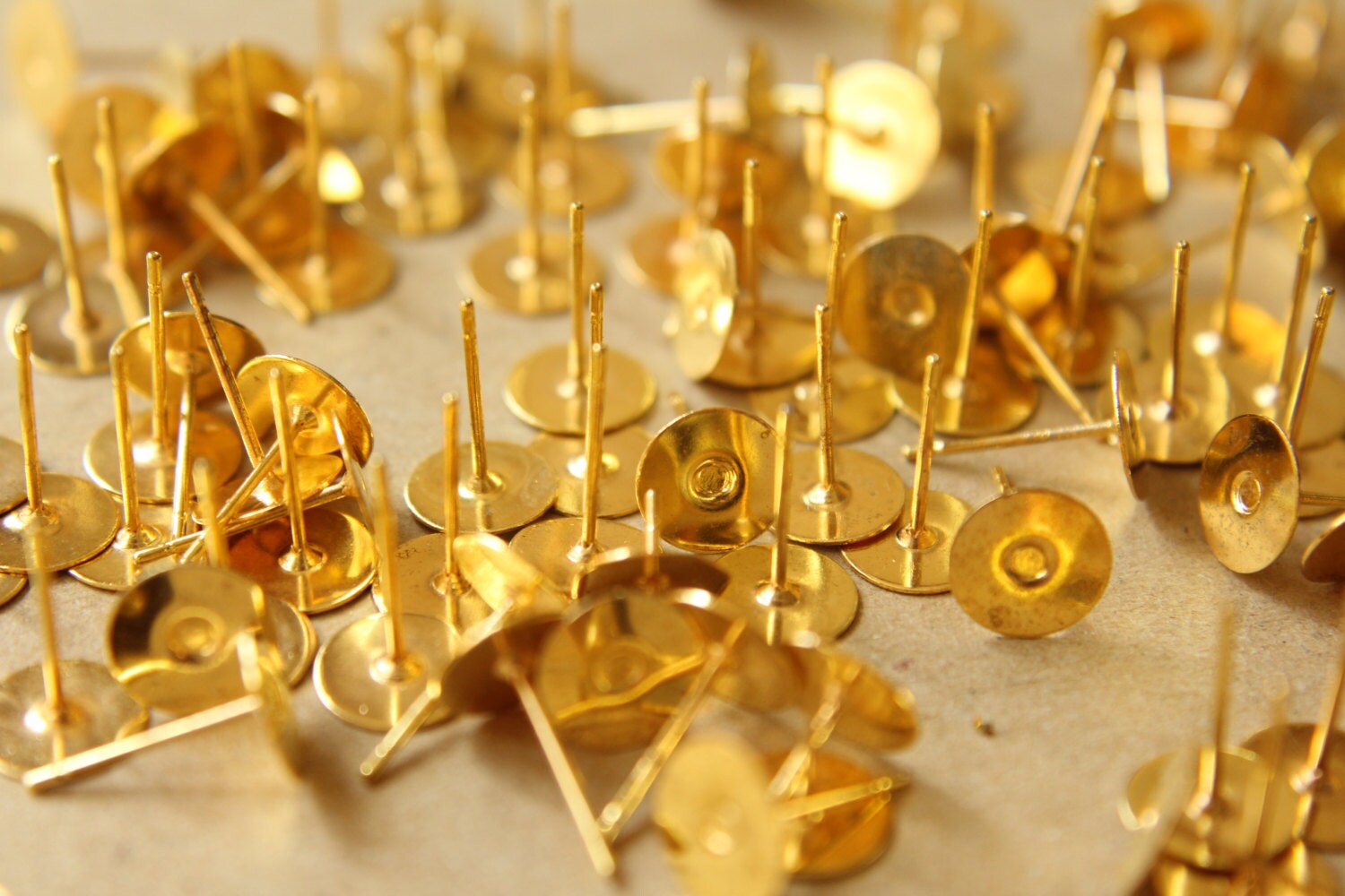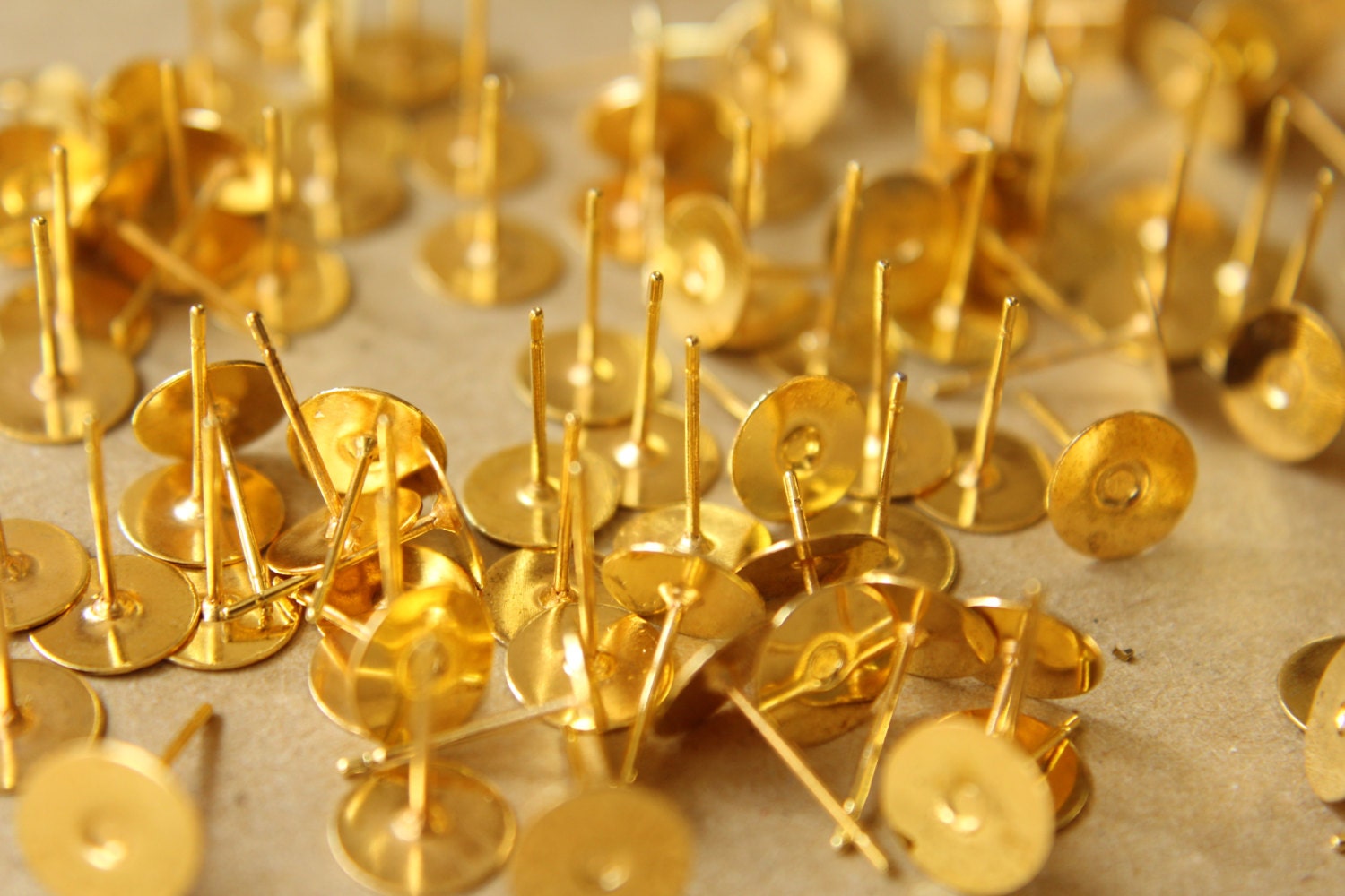100 pc. Gold plated earring posts, 8mm pad *Also available in 500 piece *| FI-201