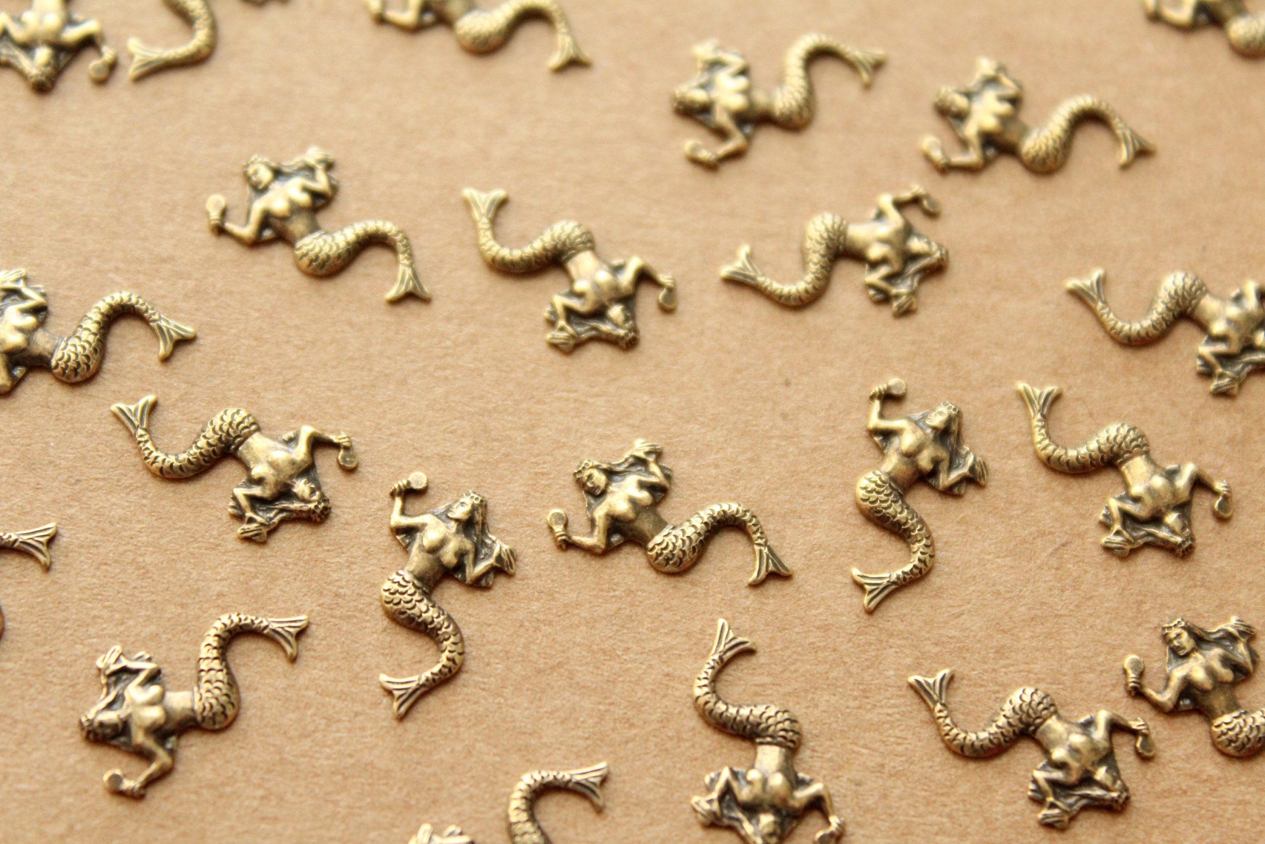 12 pc. Tiny Antique Brass Plated Mermaids: 13mm by 8mm – made in USA | AB-109