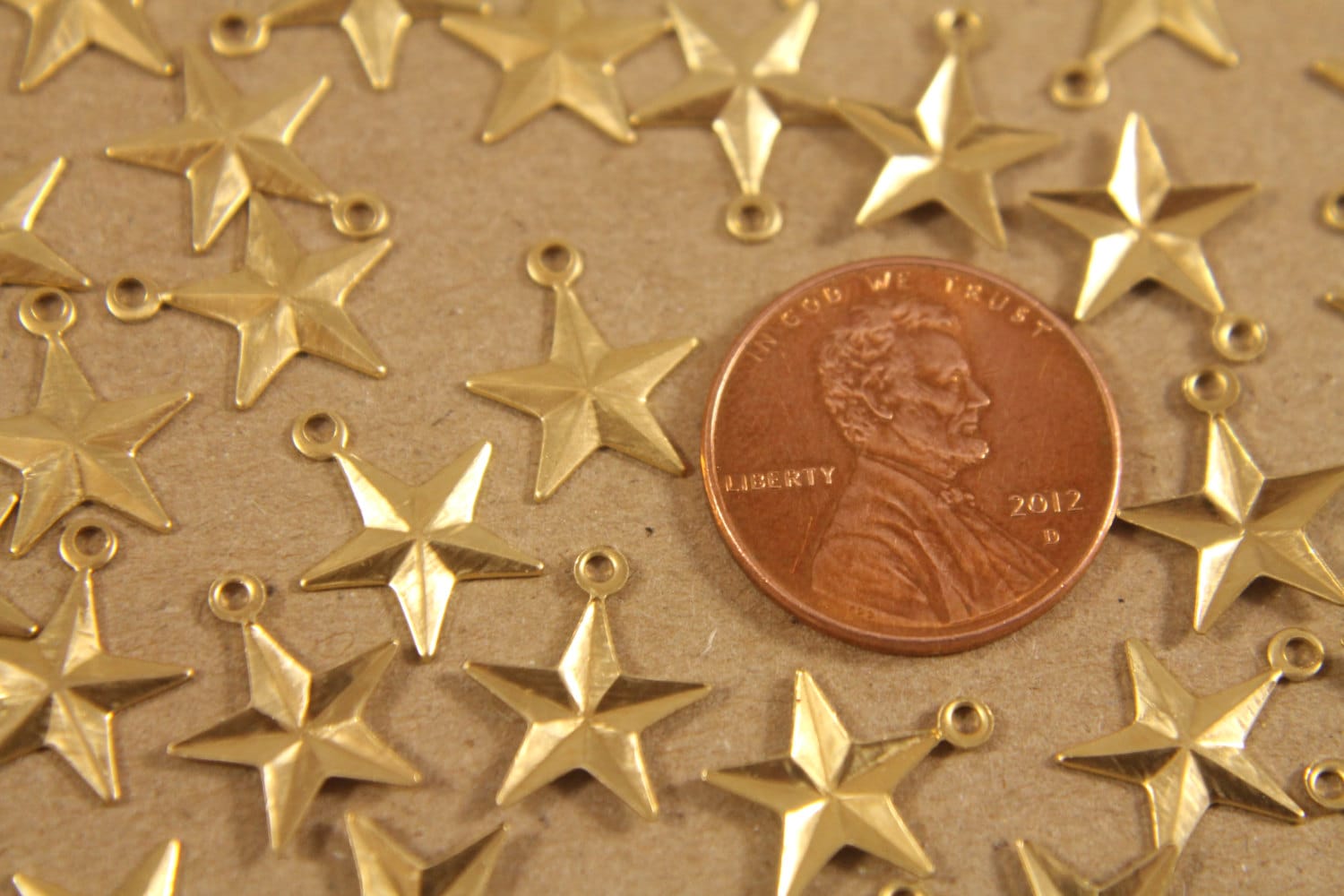 16 pc. Raw Brass Barn Stars with Loop: 11mm by 12mm – made in USA | RB-233
