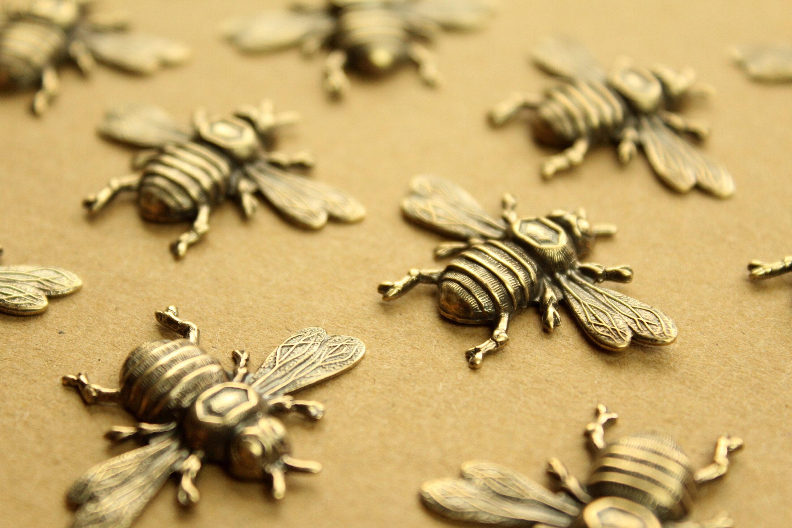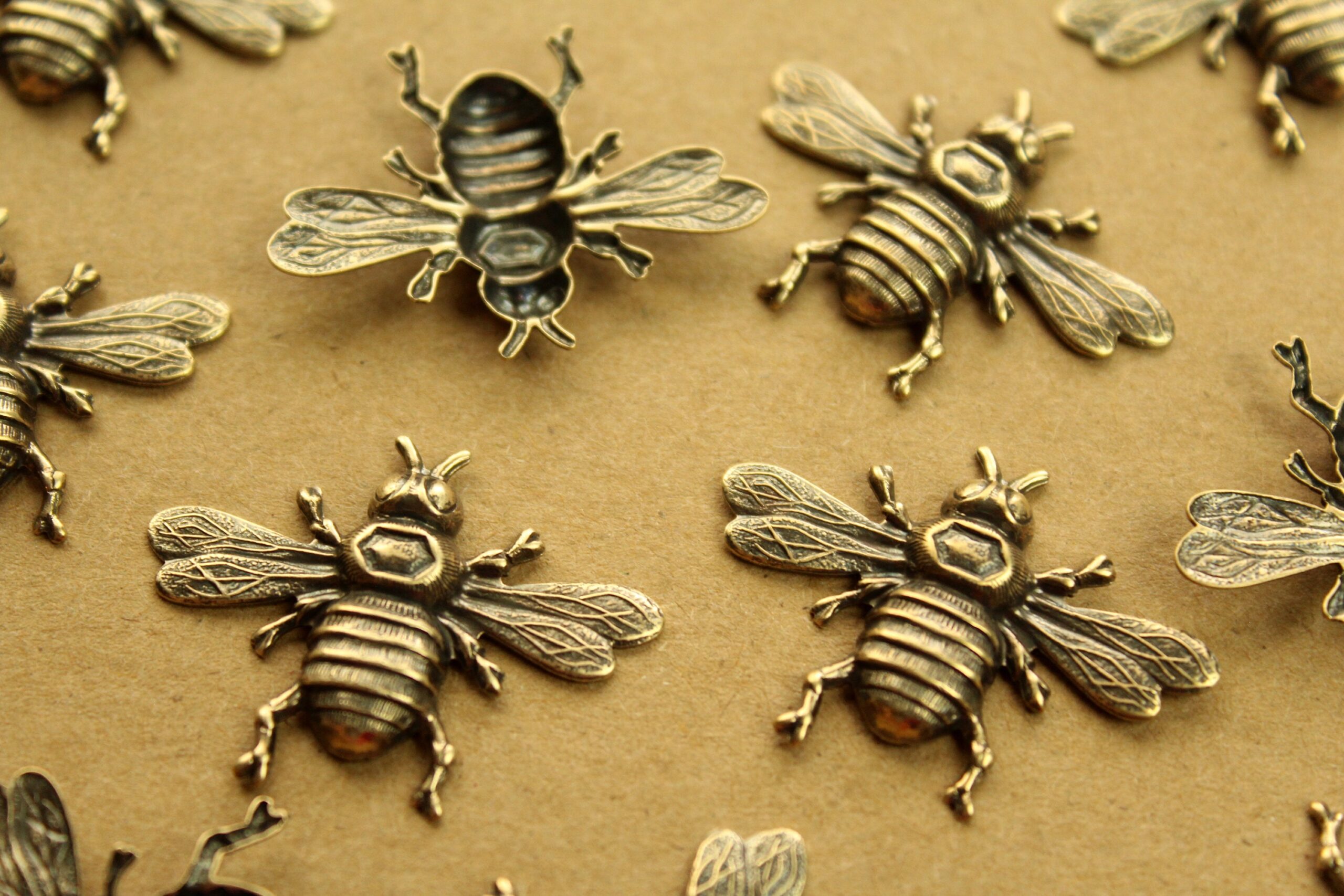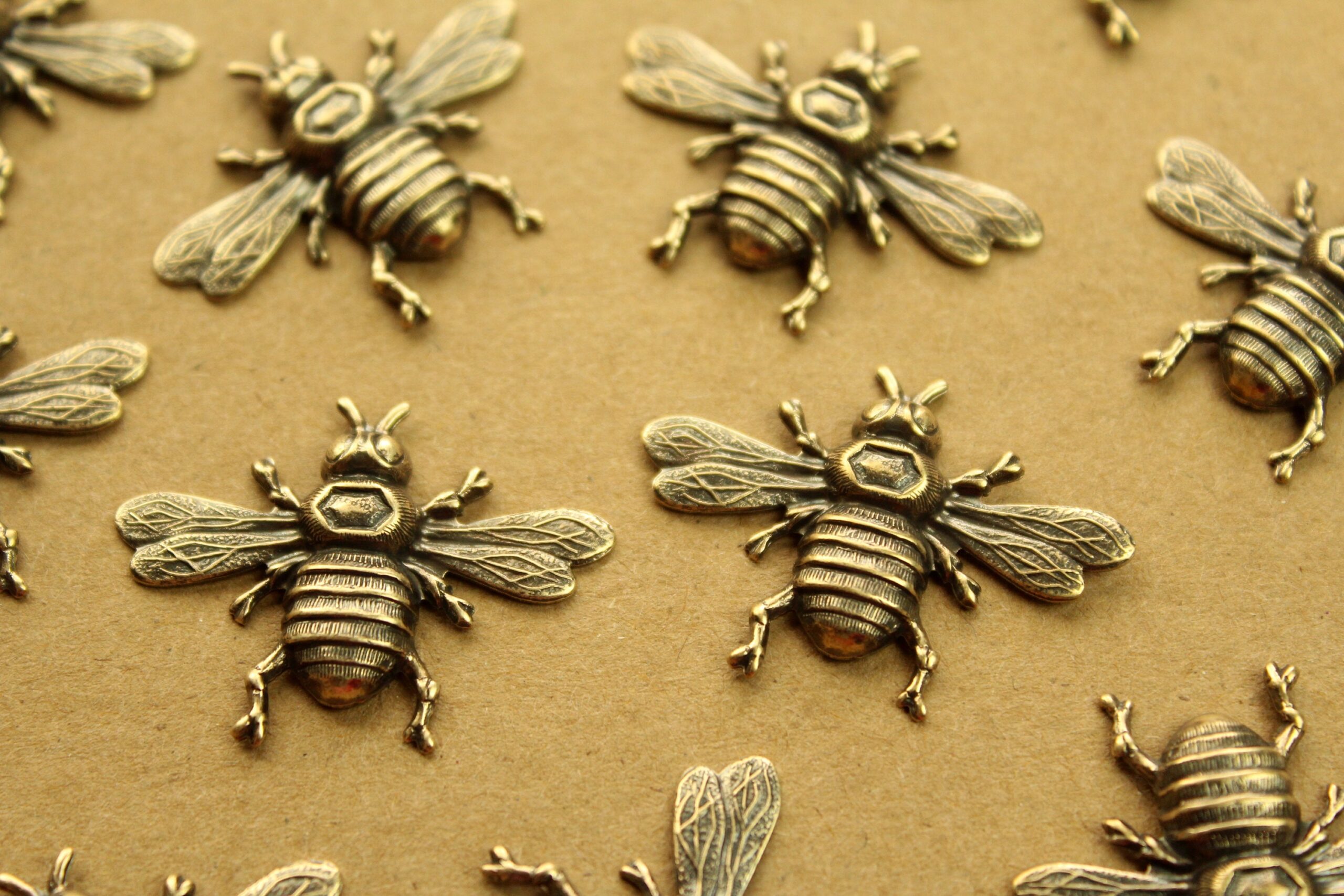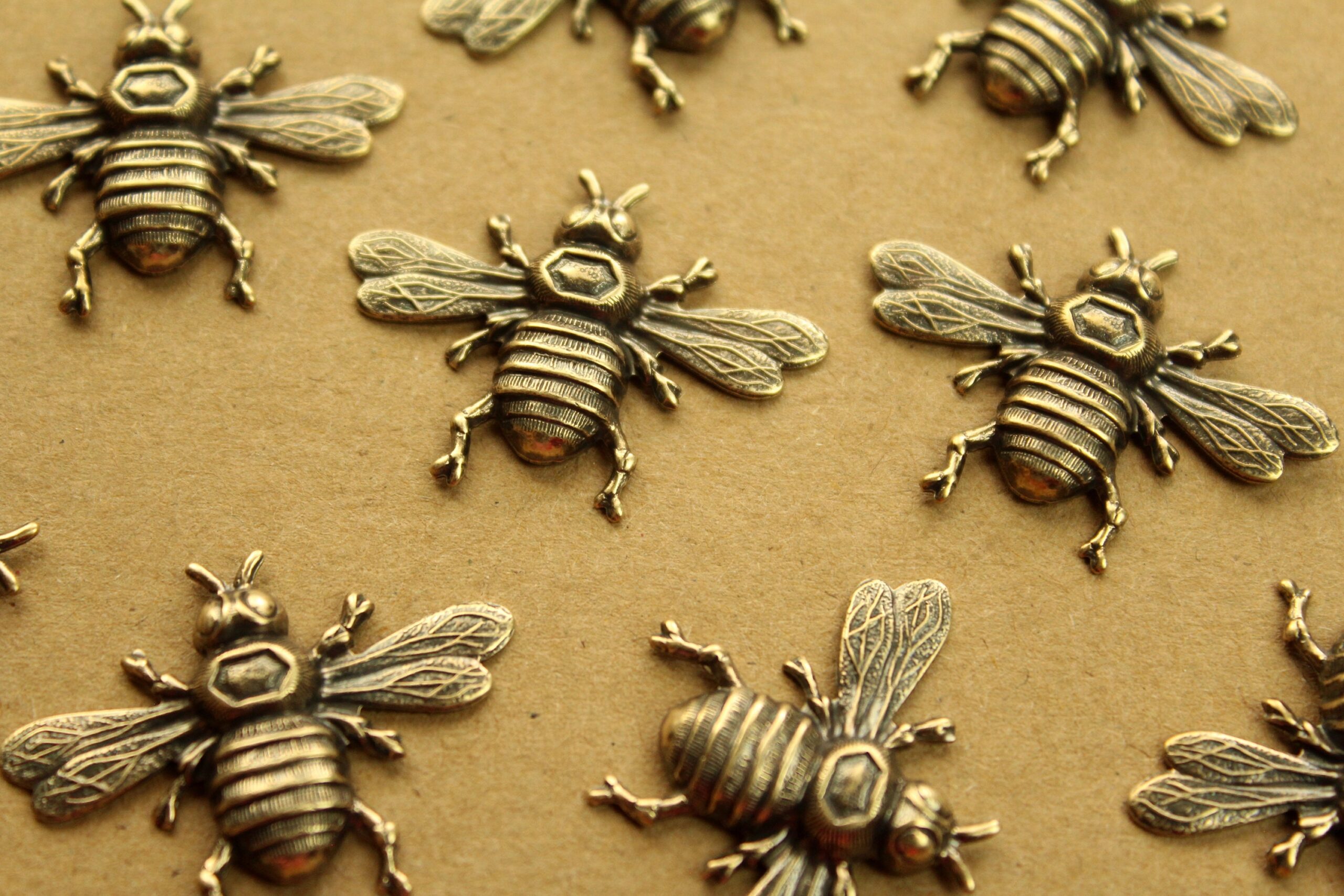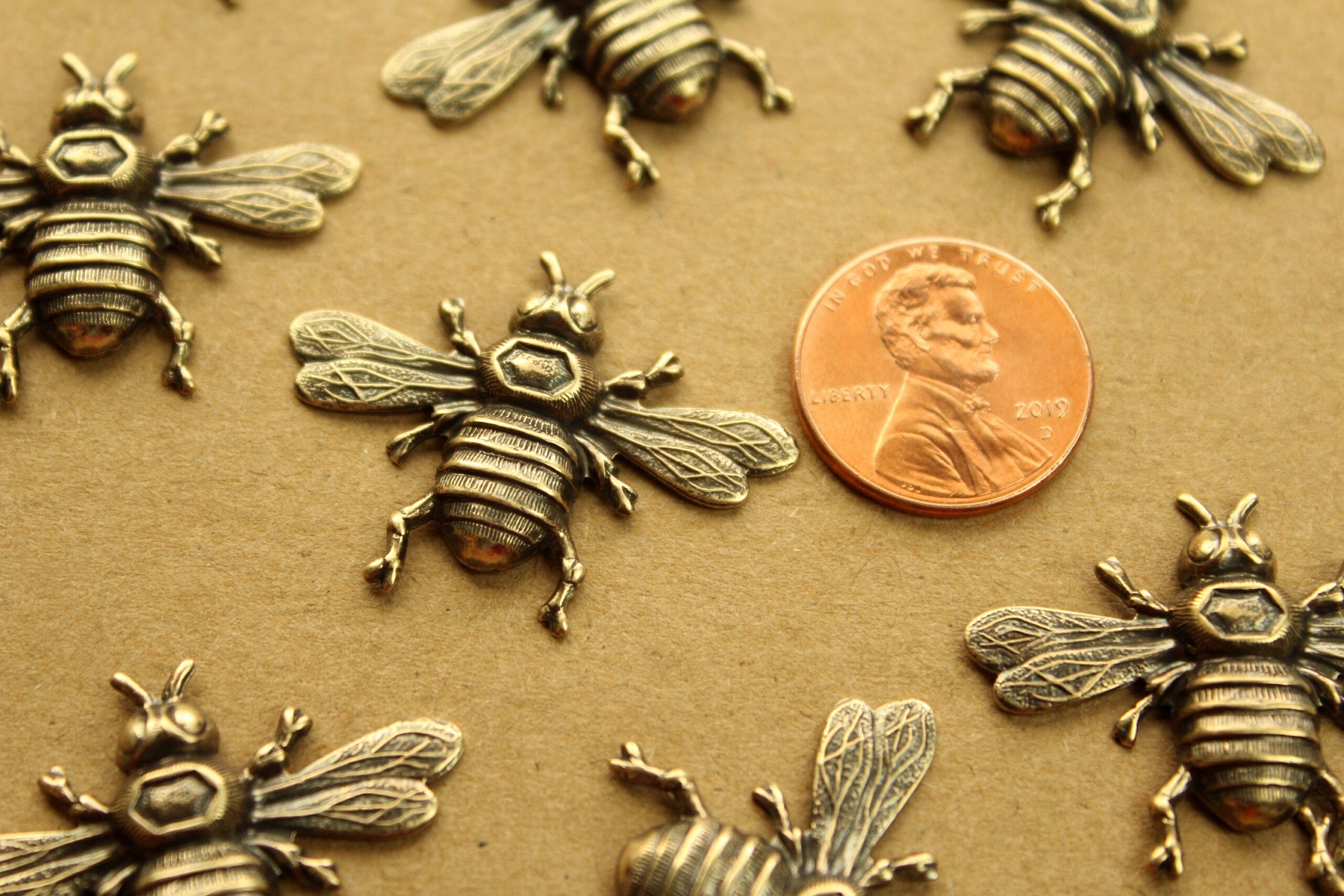 Large-sized brass queen bee stampings with hollow backs made in the USA.