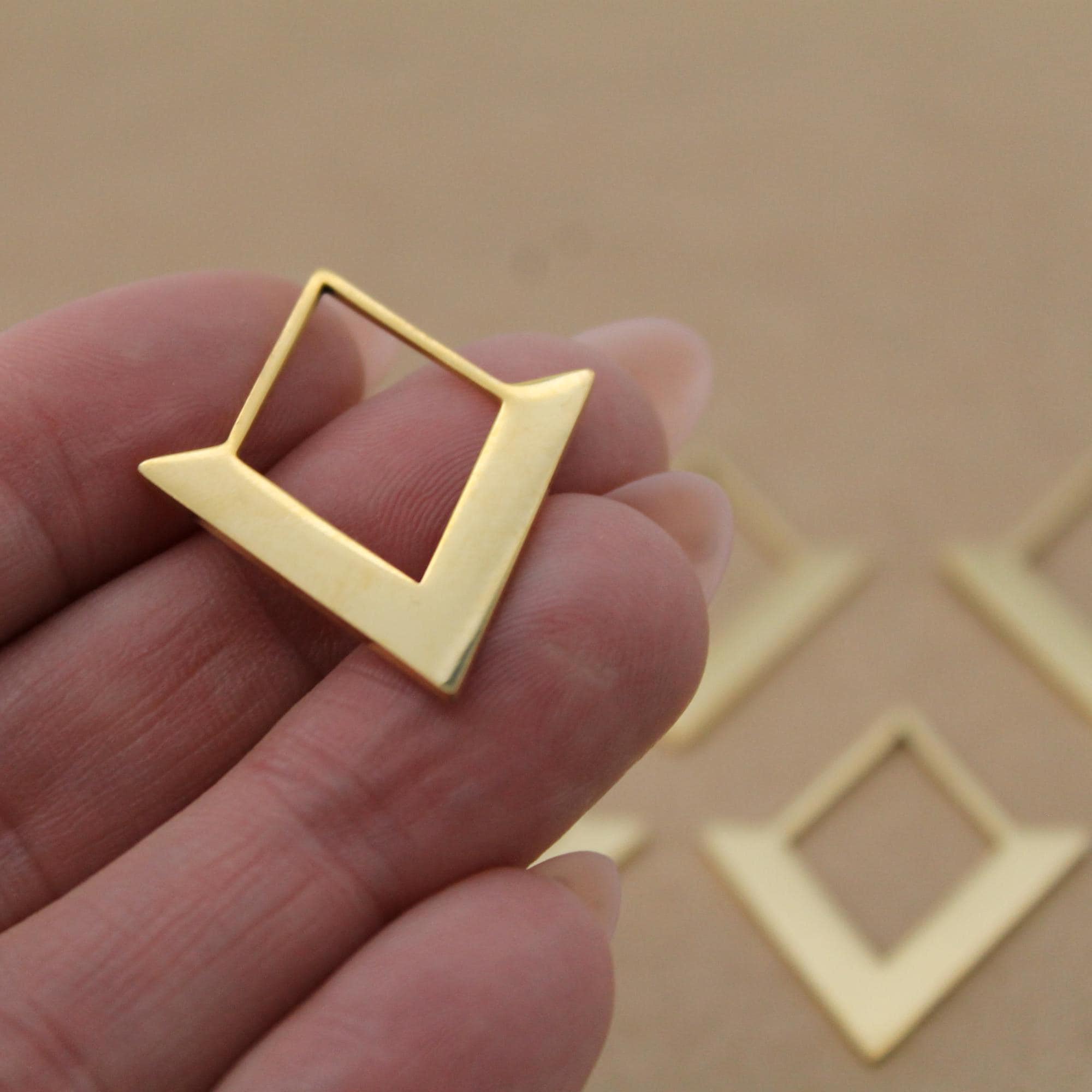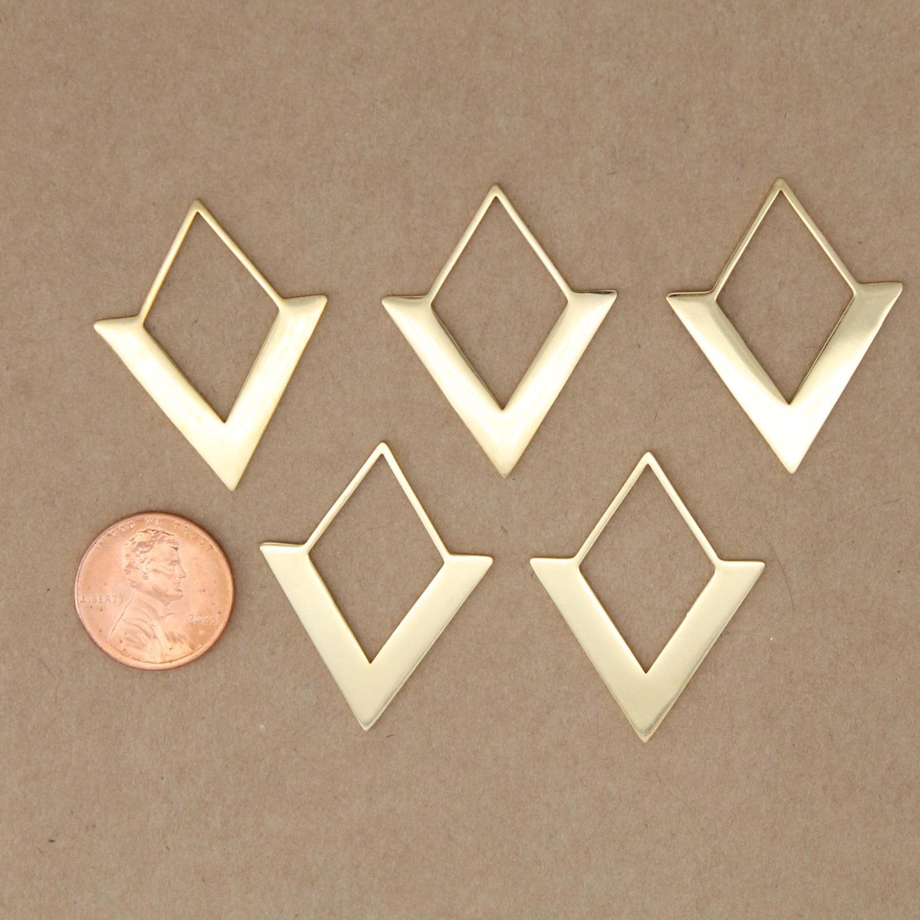 2 pc. Laser Cut Rhombus Charms, Gold Plated Stainless Steel, 35mm x 27.5mm | MIS-318*