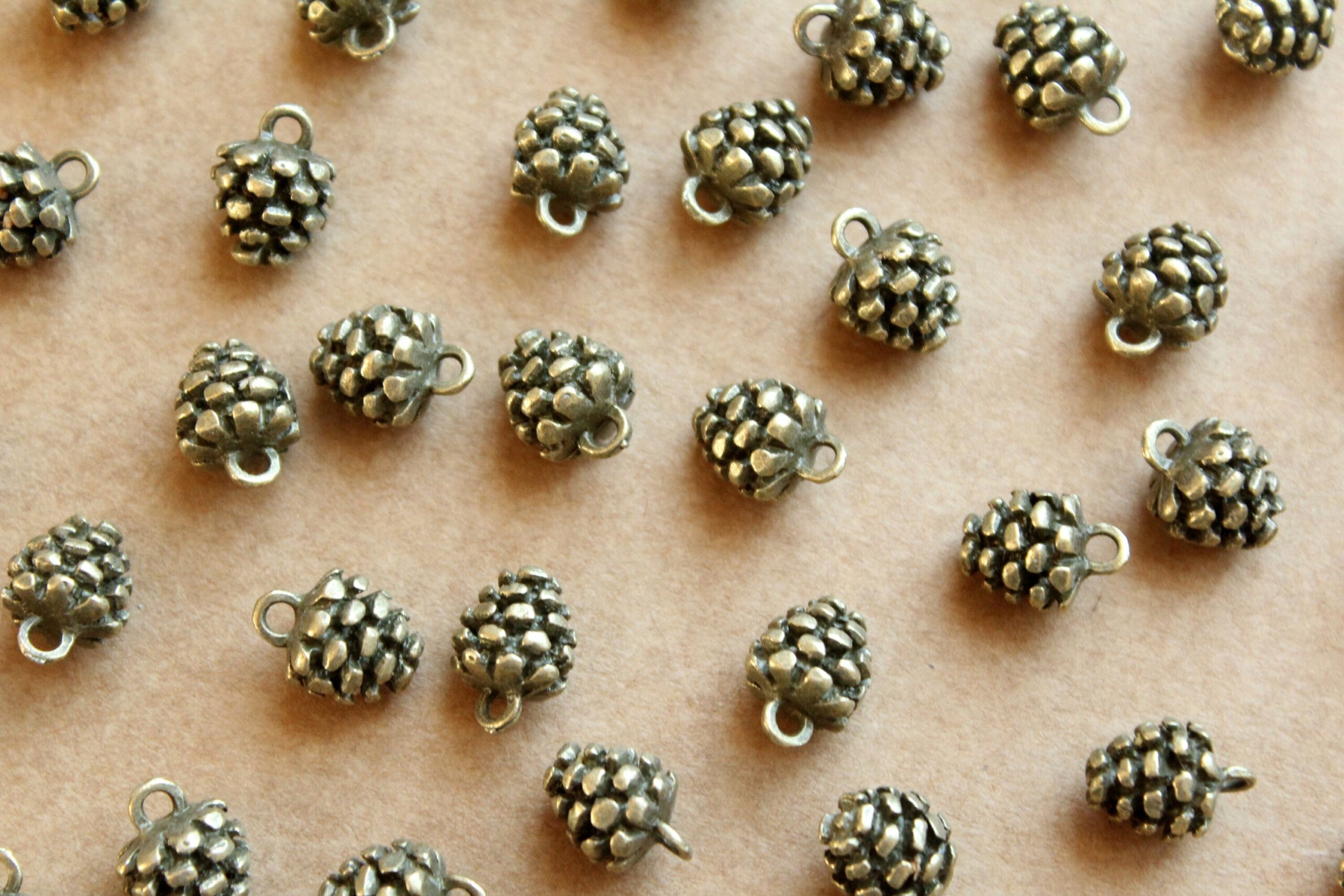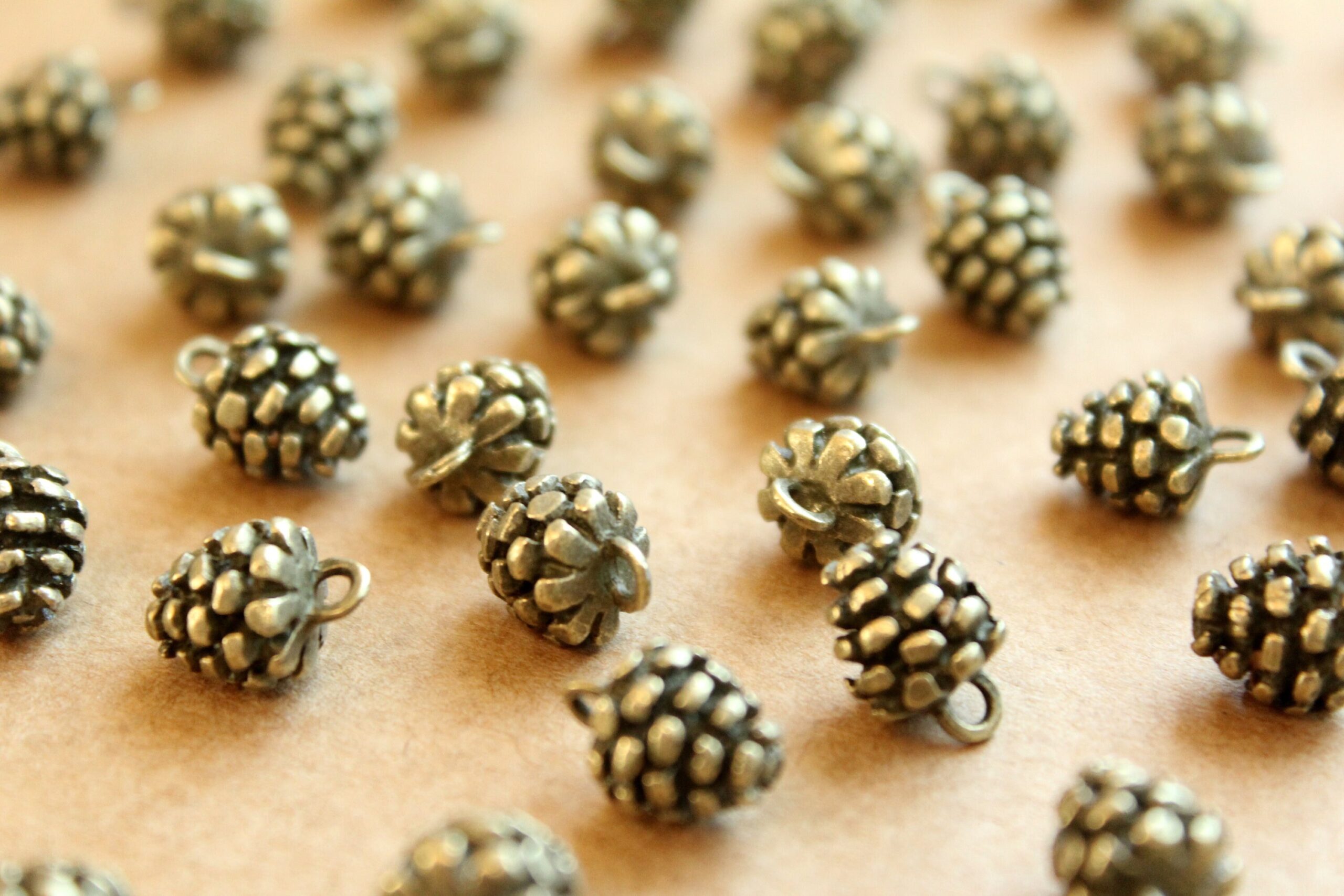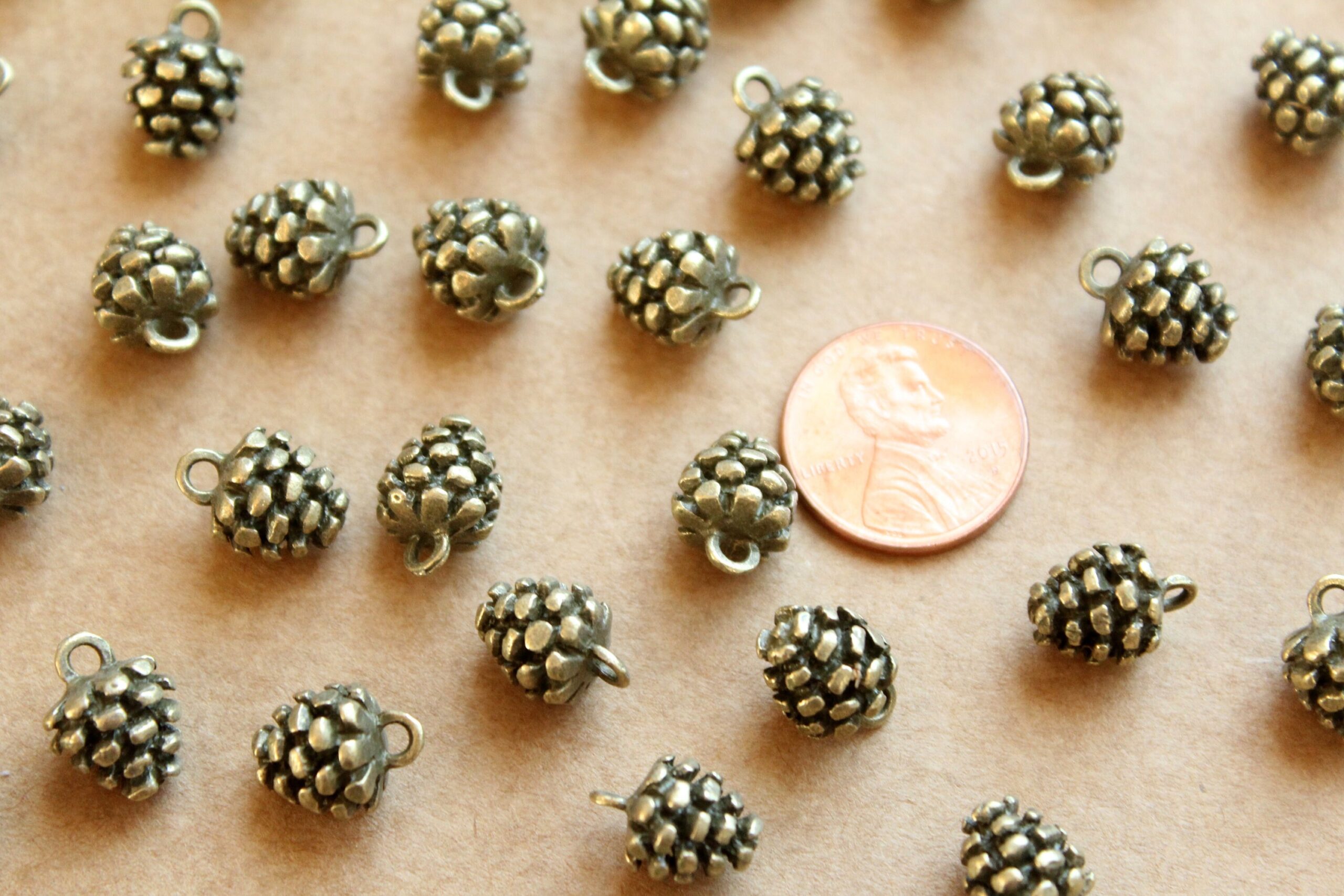20 pc. Antique Brass / Bronze Pine Cone Charms, 9mm by 9mm | MIS-192