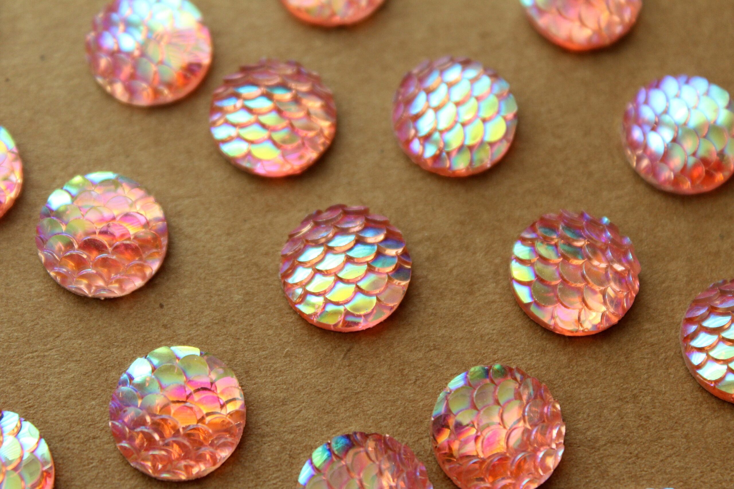 Gorgeous mermaid scale iridescent cabochons. The pictures do not do these justice. You will receive 20 pieces.