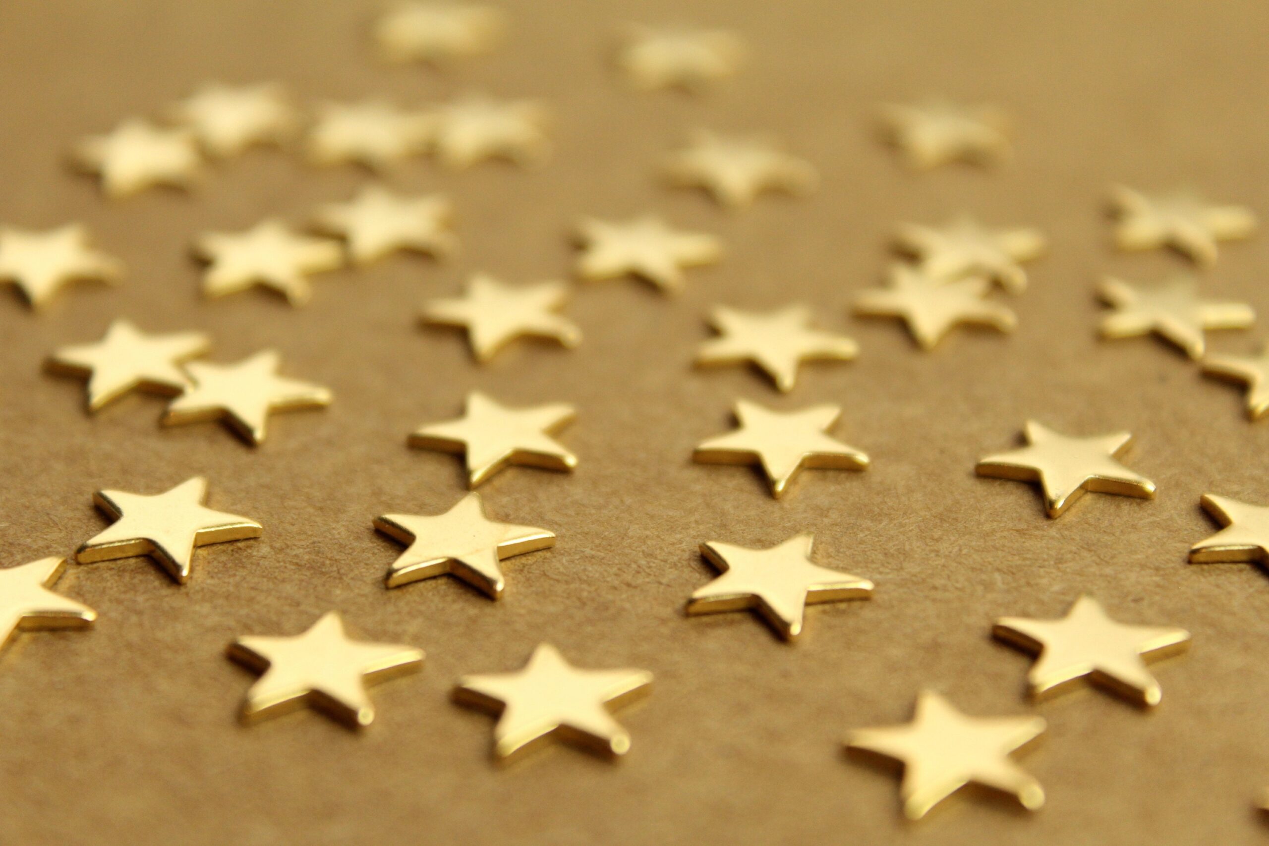 24 pc. Small Gold Plated Brass Stars: 10mm by 10mm – made in USA | GLD-065