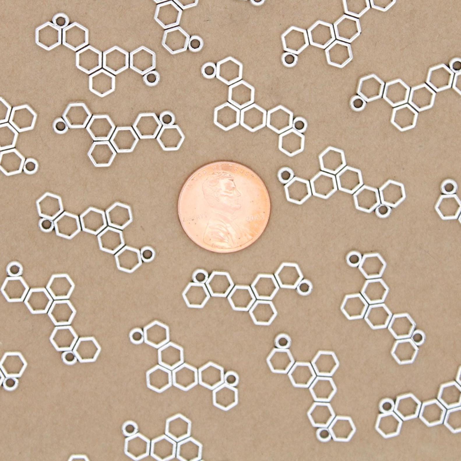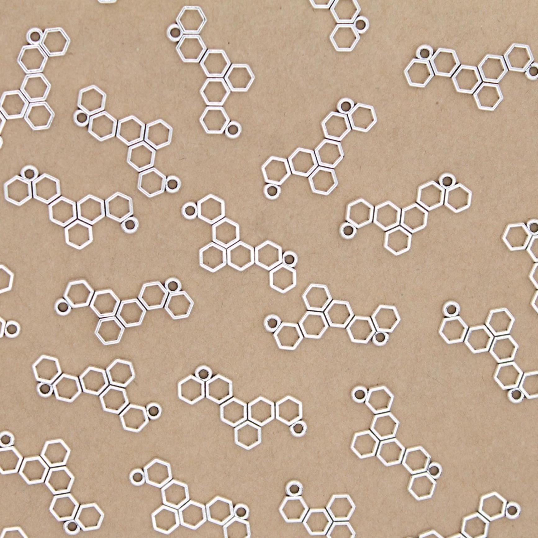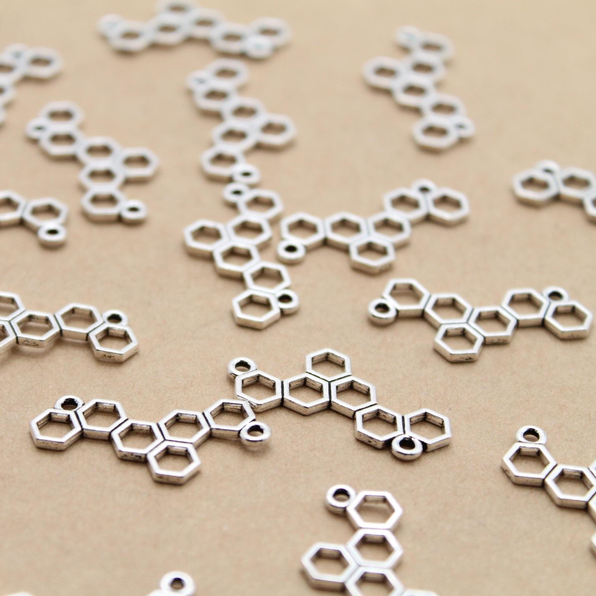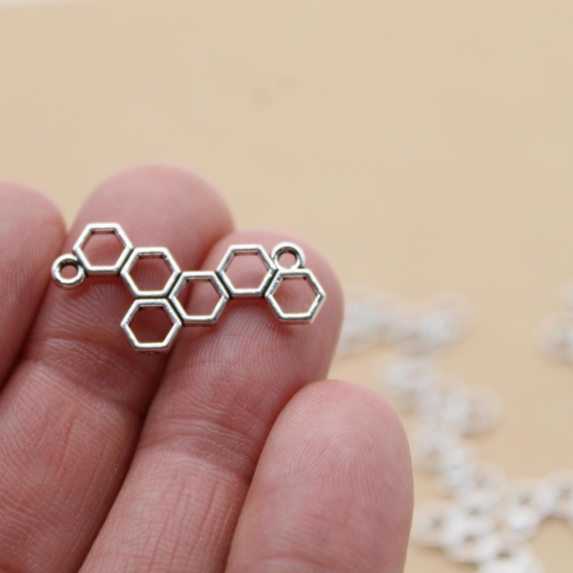 25 pc. Antique Silver Honeycomb Charms, 2 Loop Connectors, 27mm x 13mm | MIS-218**