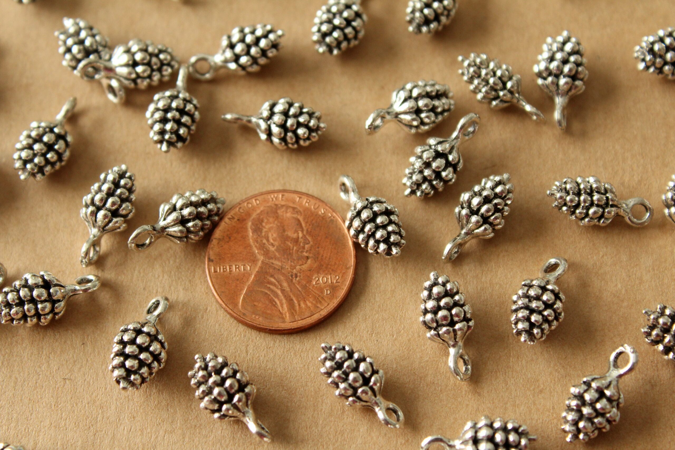 Cute antique silver pinecone charms. Nickel, lead, and cadmium free.