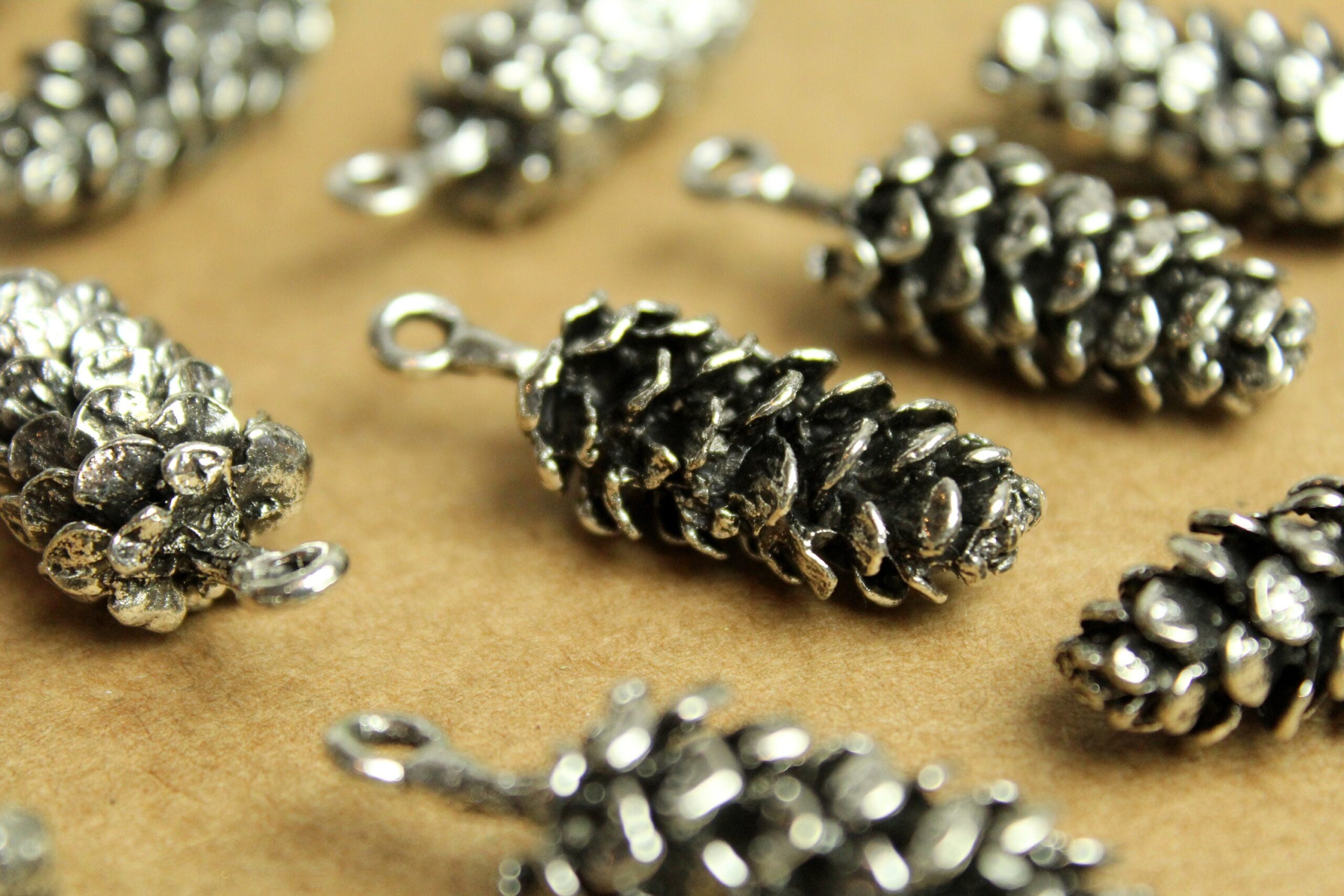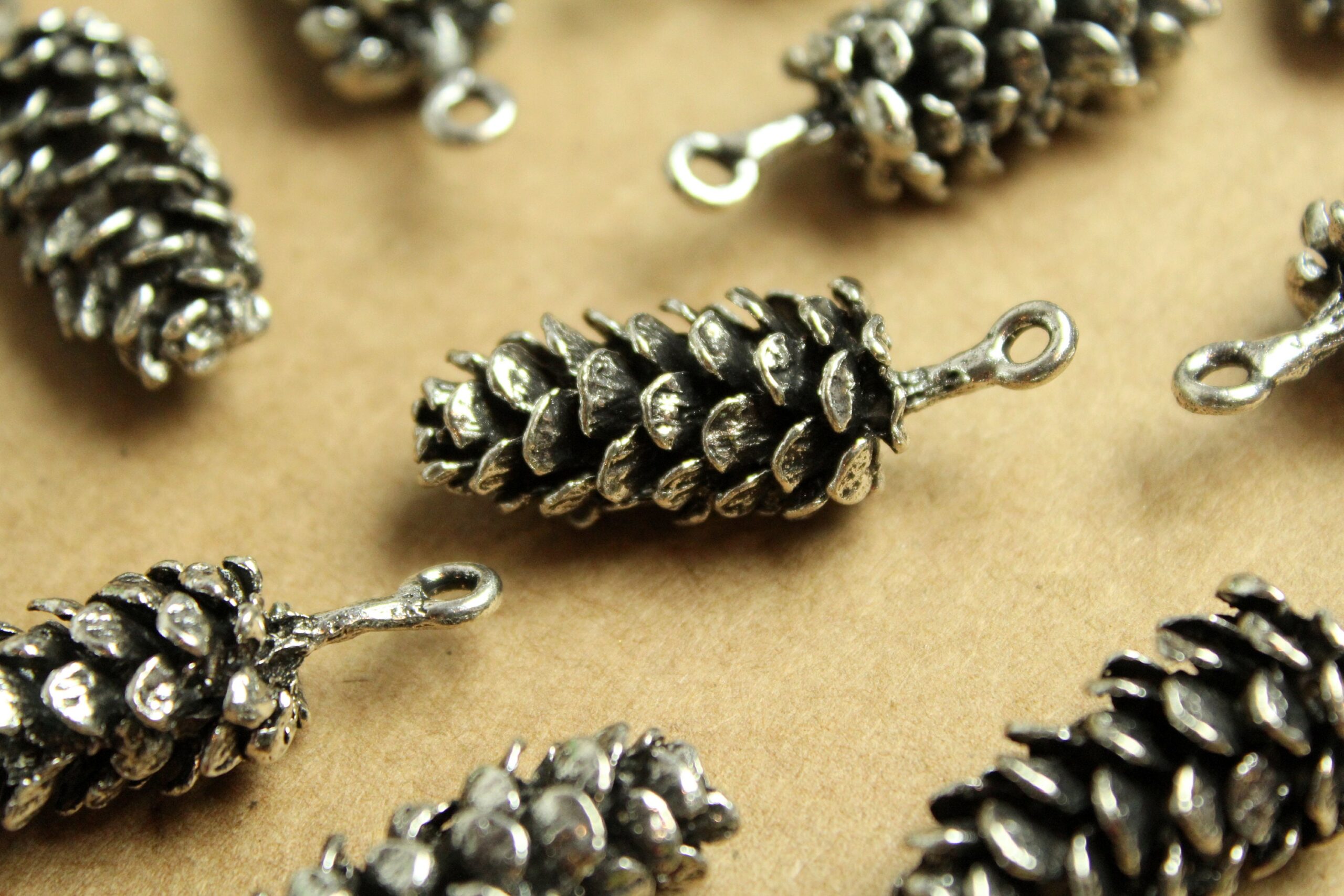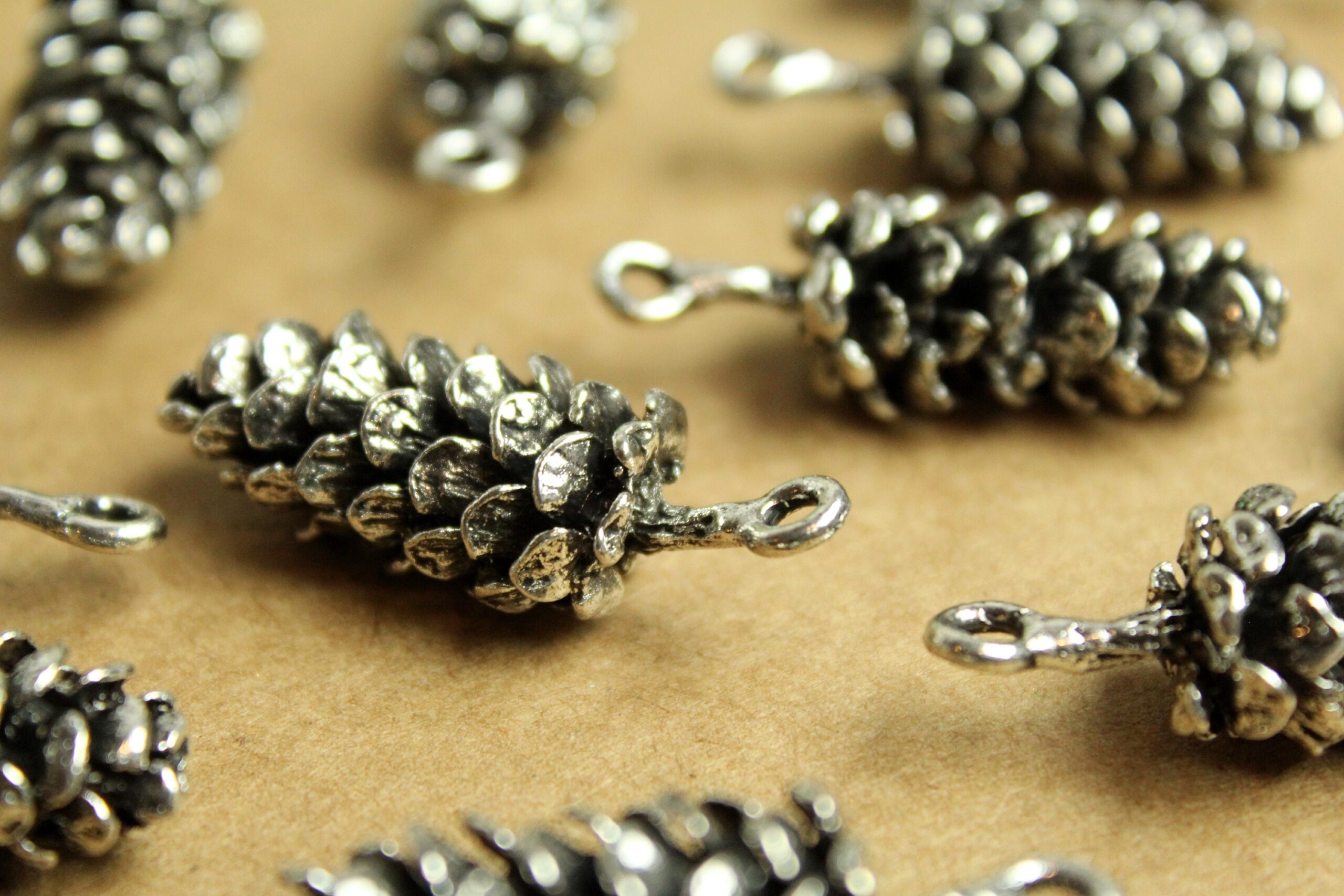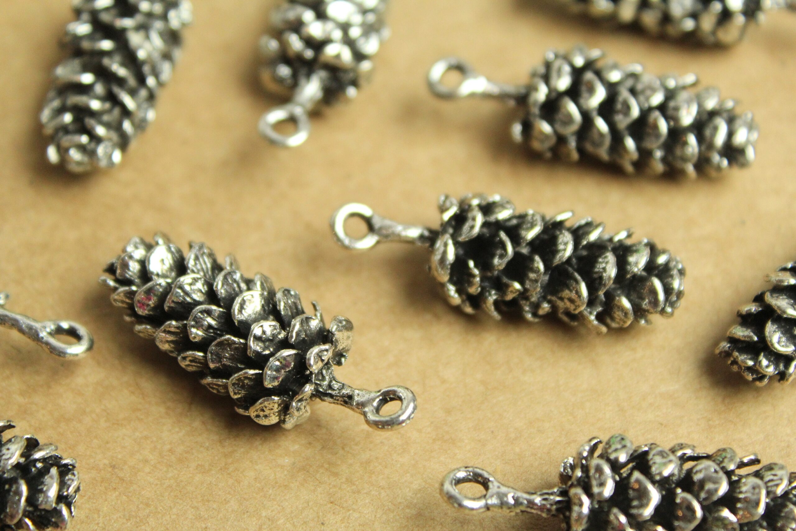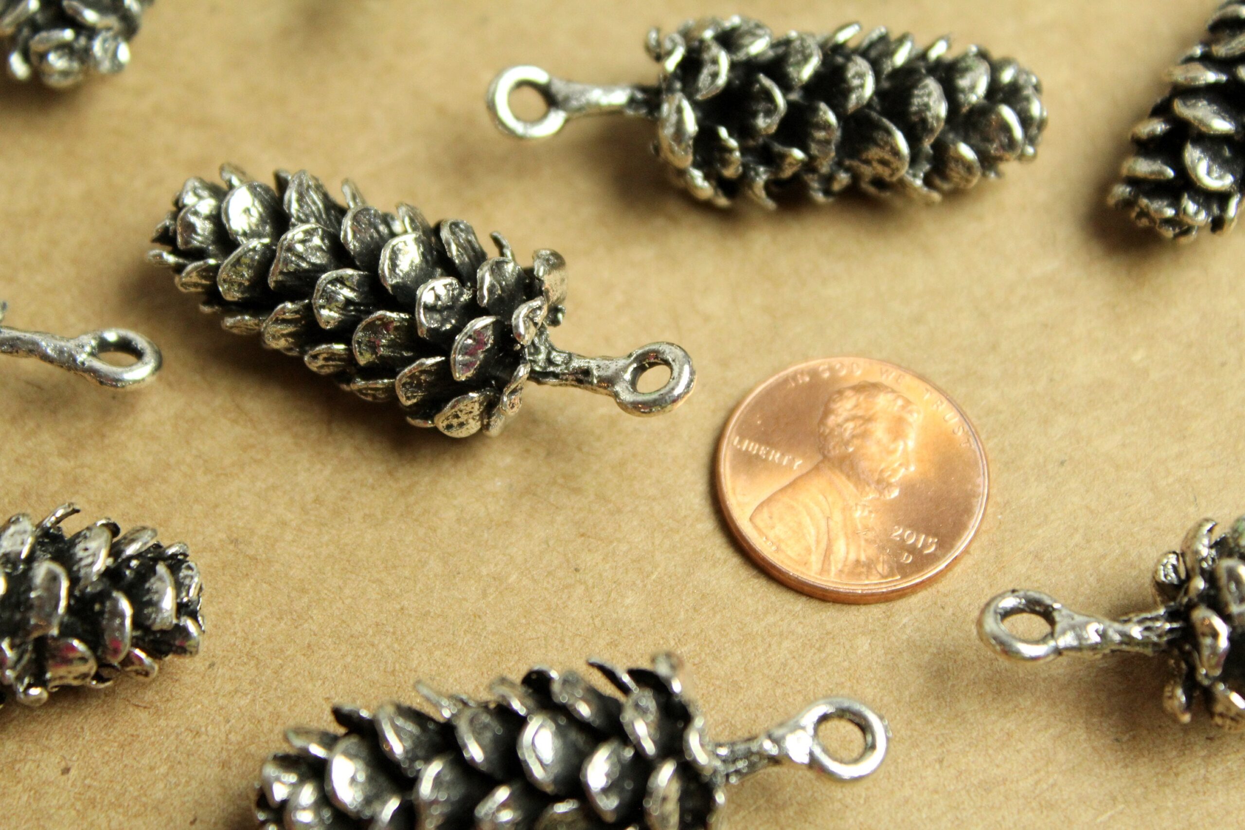Lovely antique silver pine cone charms. These are large and have a good weight to them! Nickel, lead, and cadmium free.