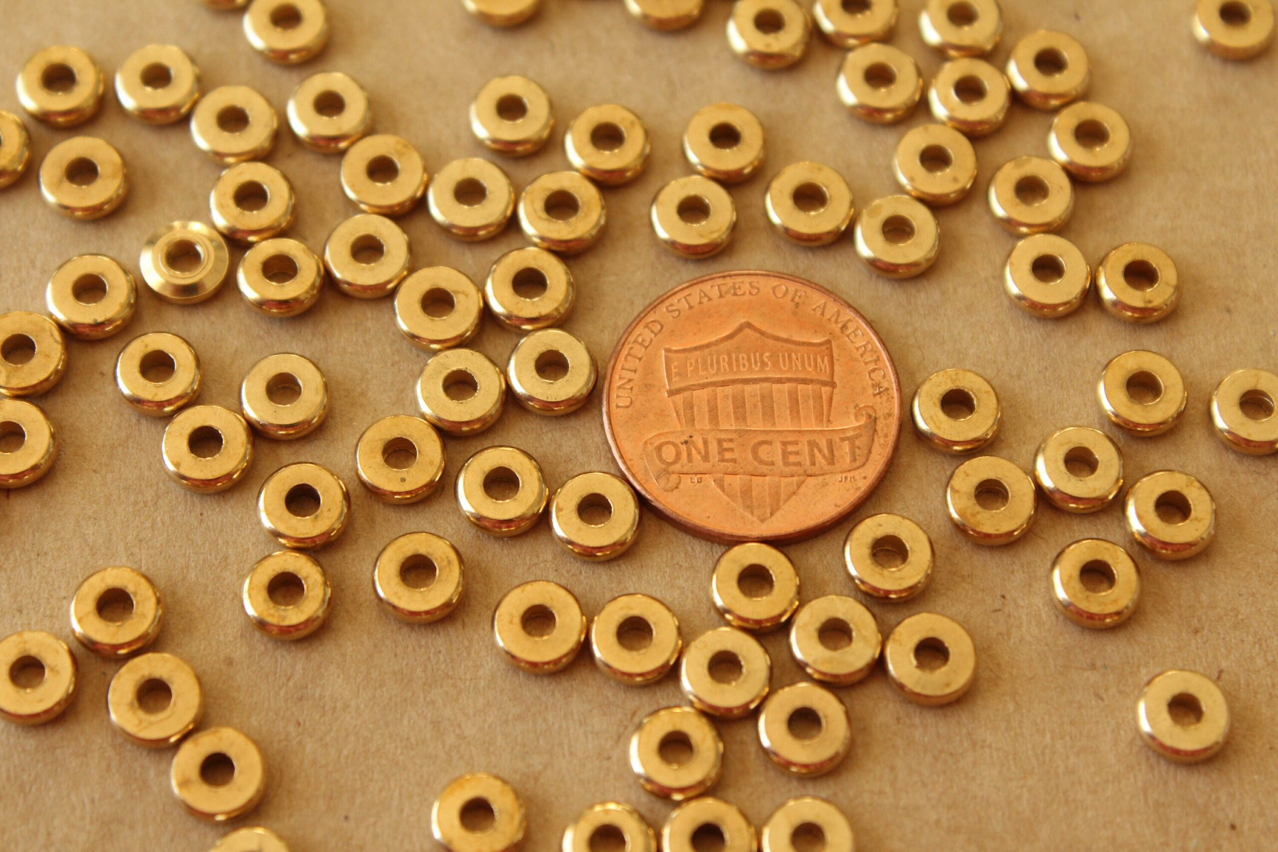 Tiny unplated raw brass round saucer spacer beads, great for all kinds of projects.