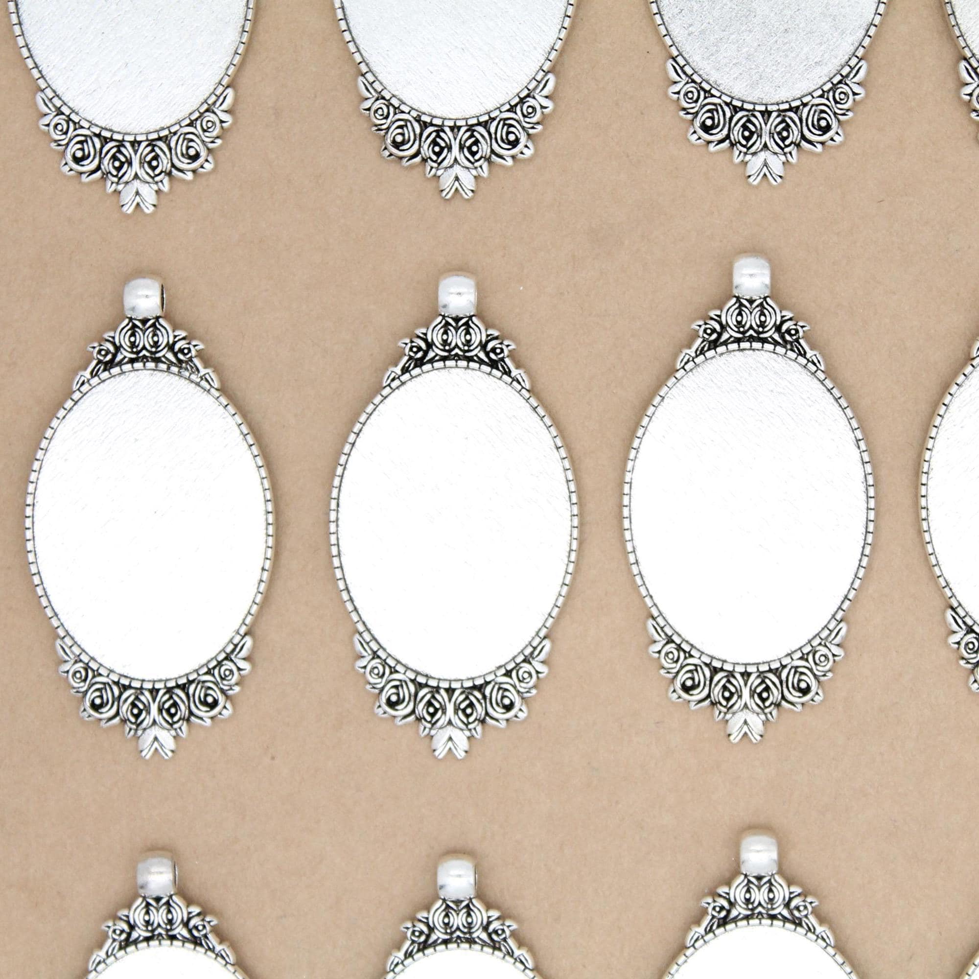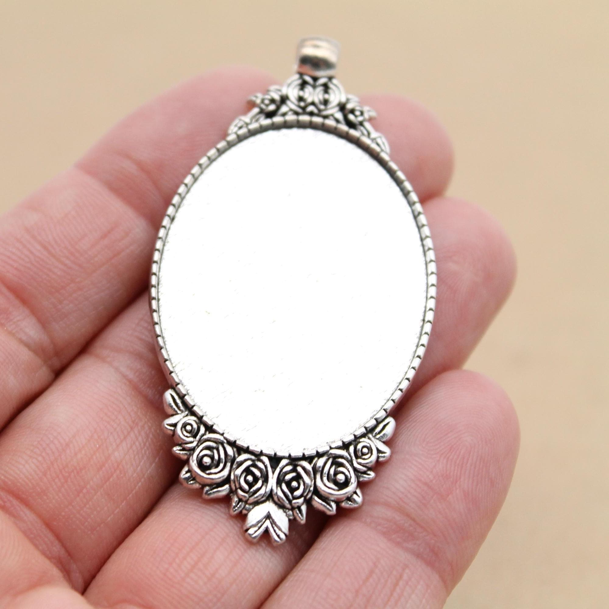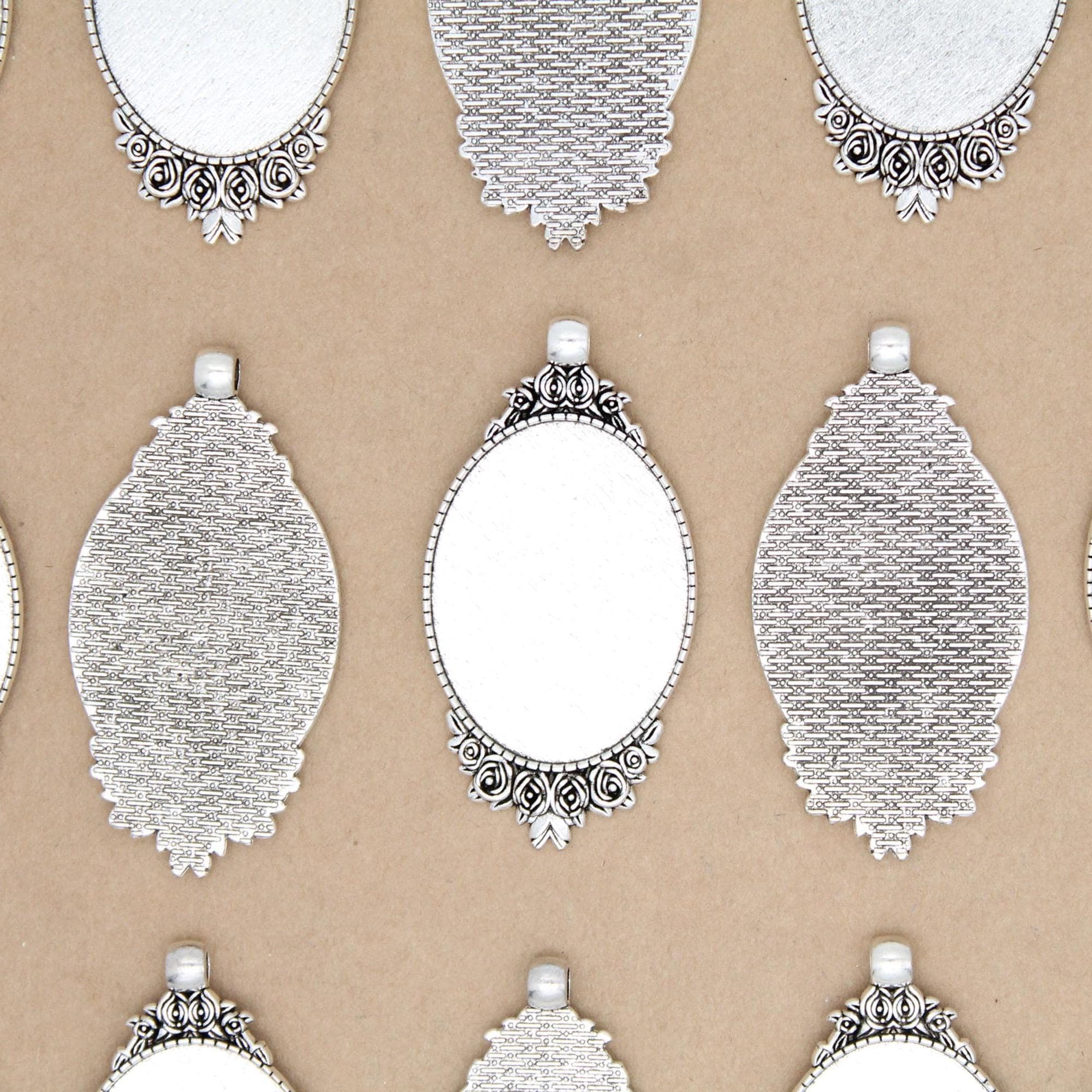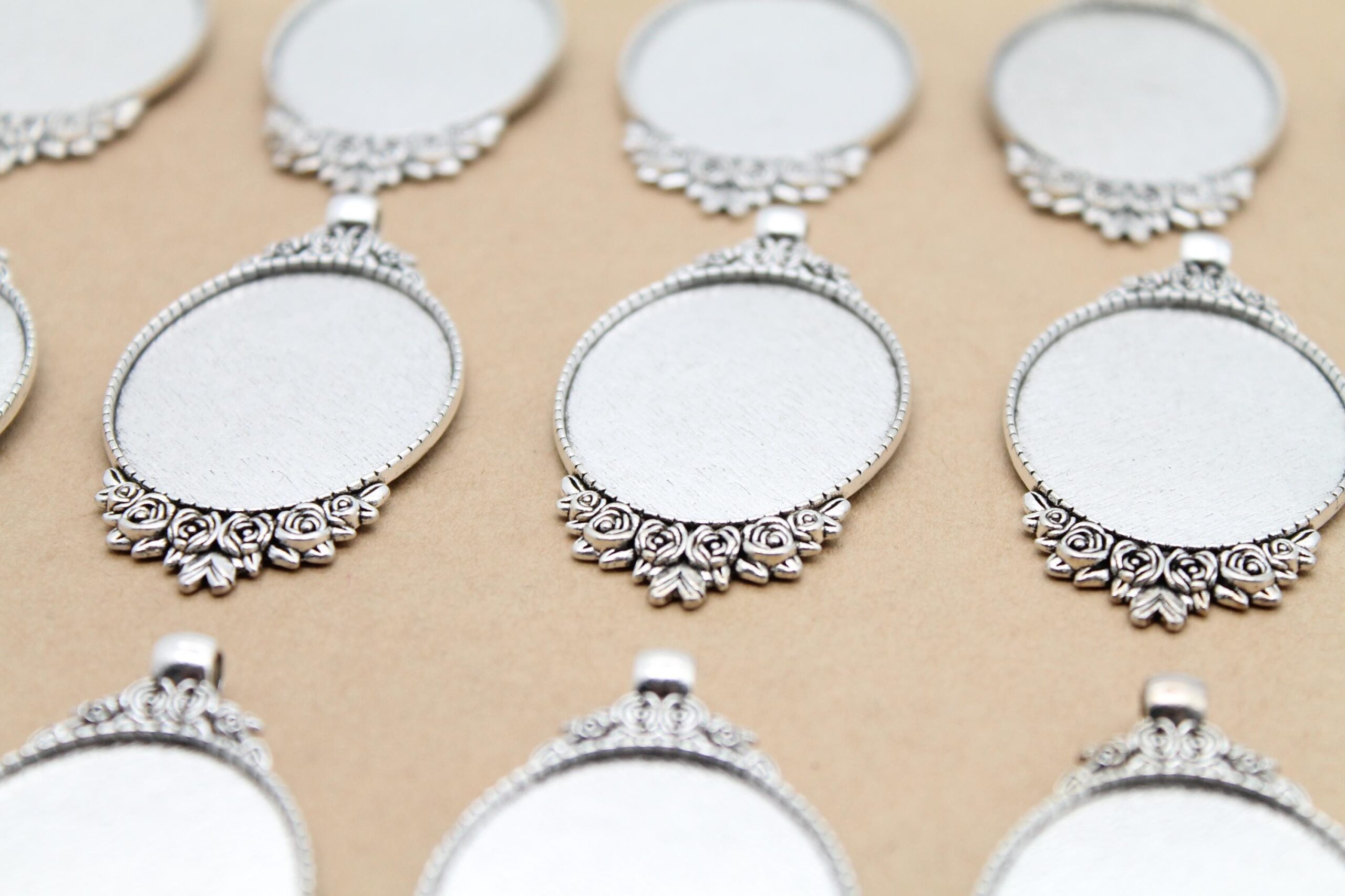 Embellished Oval Antique Silver Pendant Bezel Setting