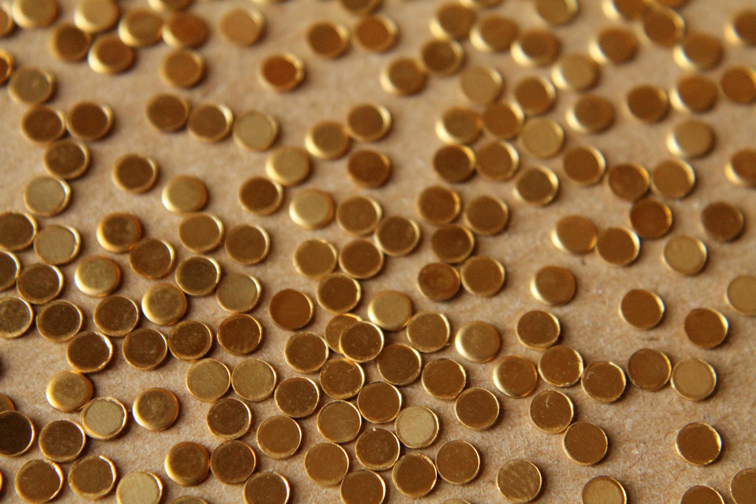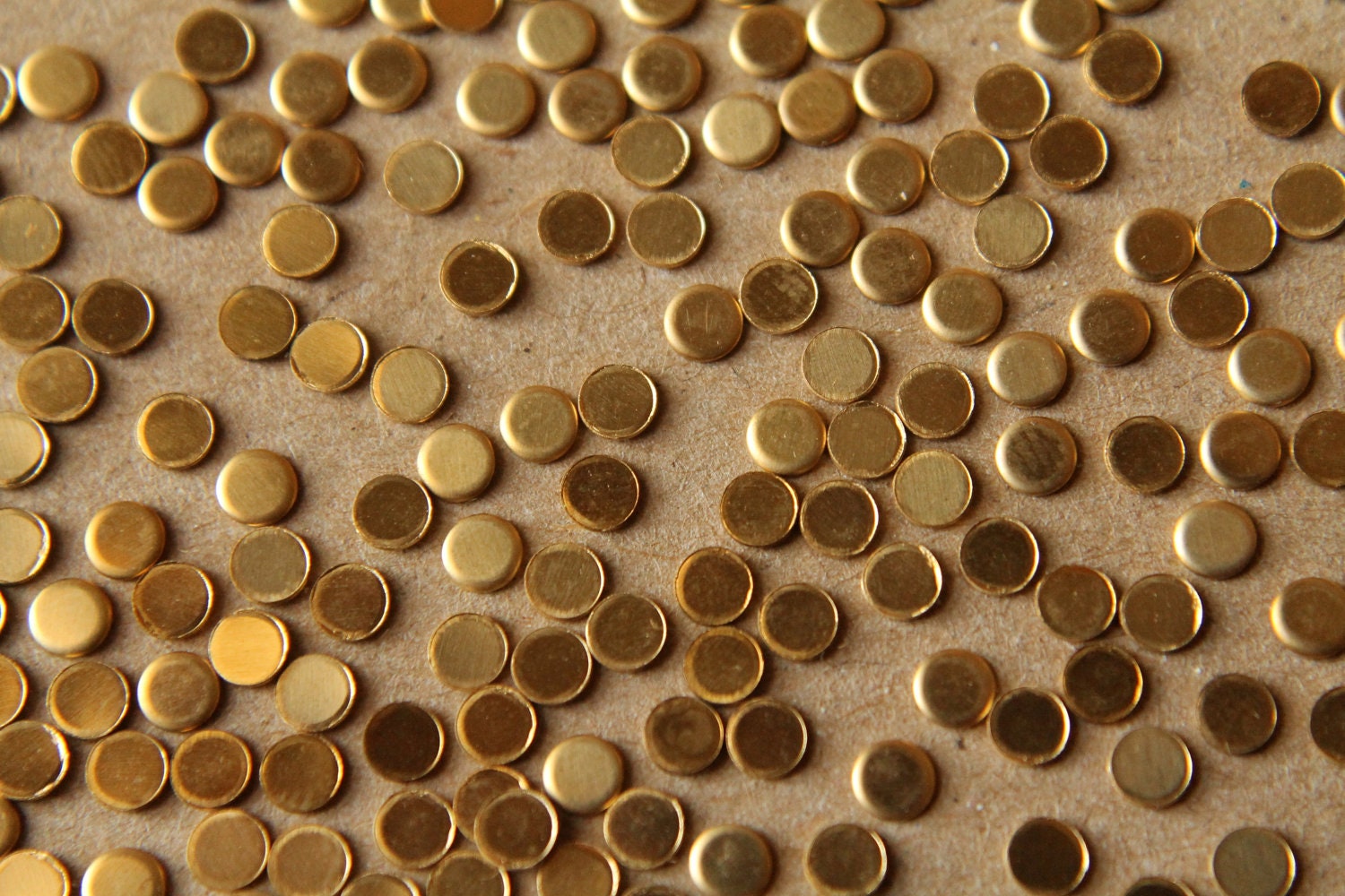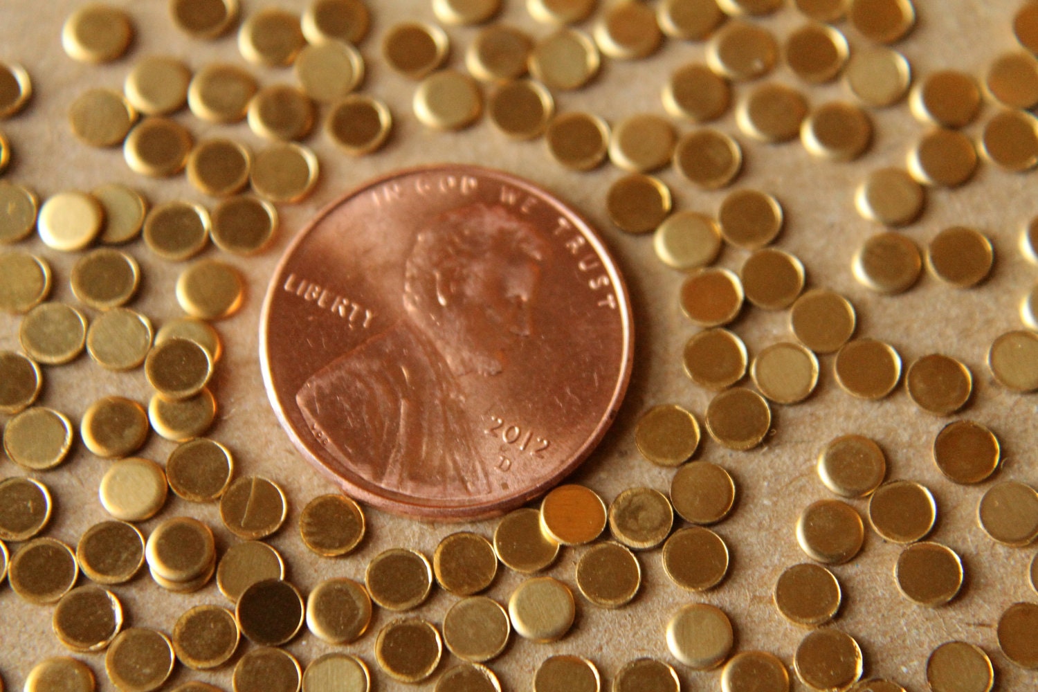 Itty bitty raw brass circle stampings with flat backs made in the USA.
