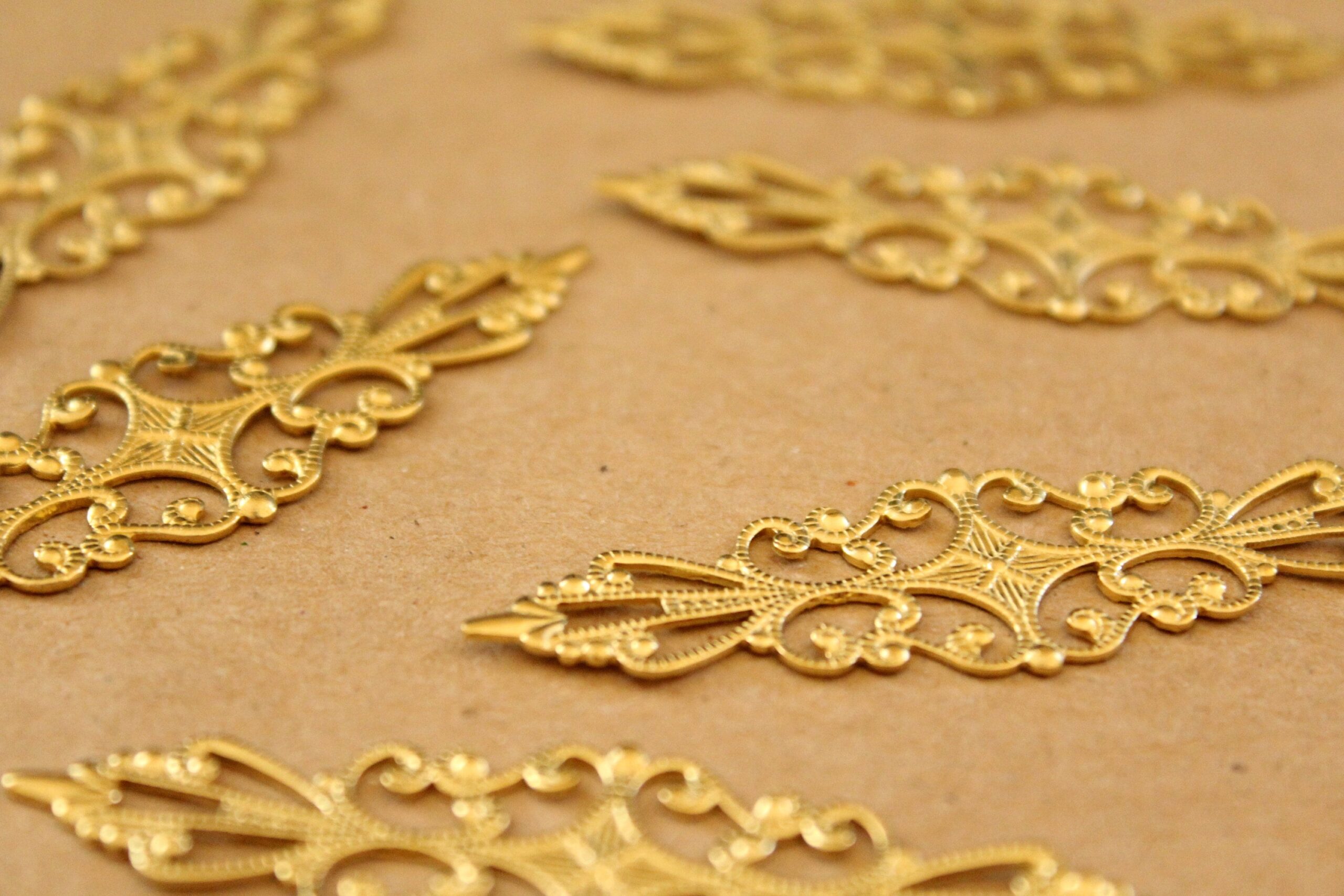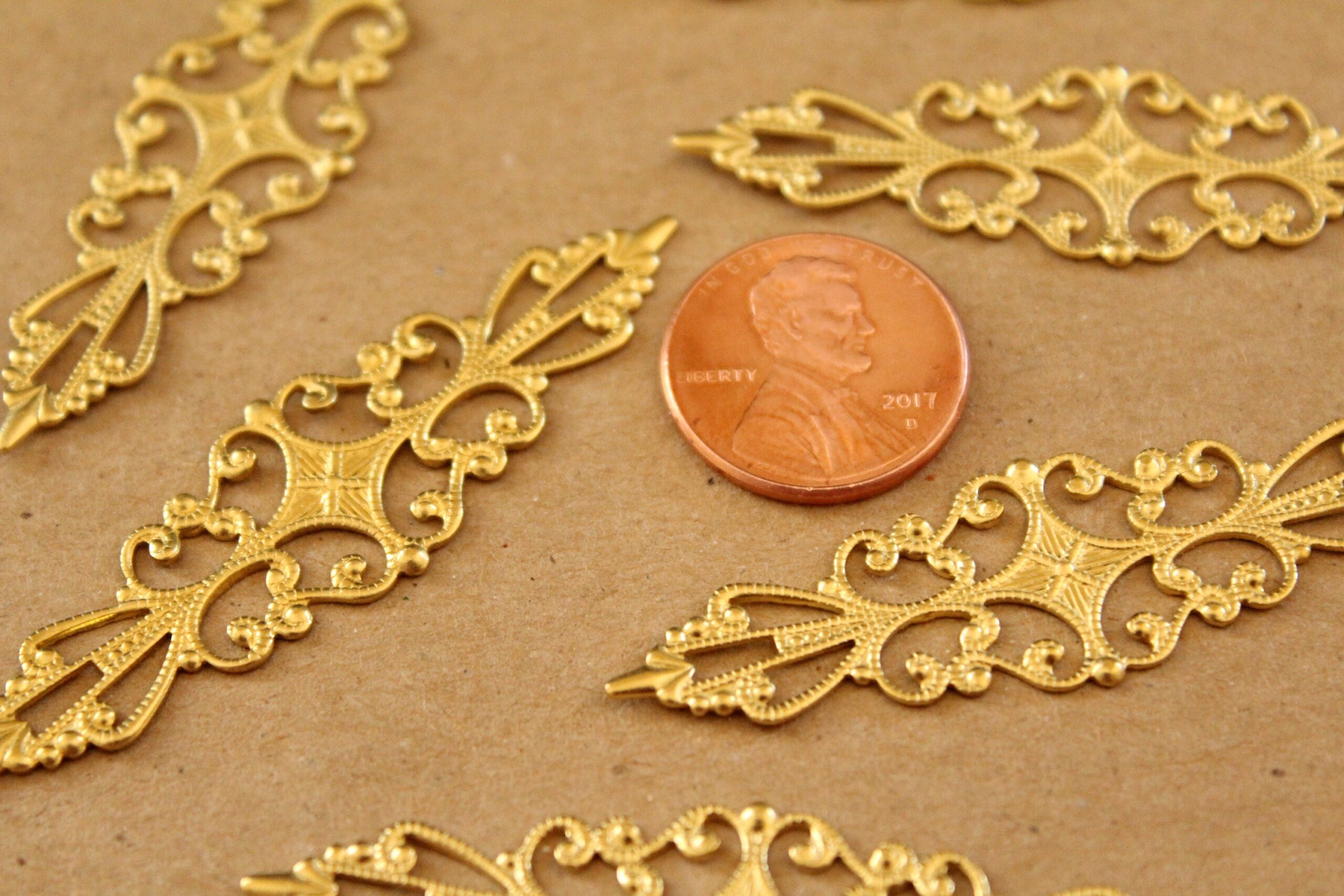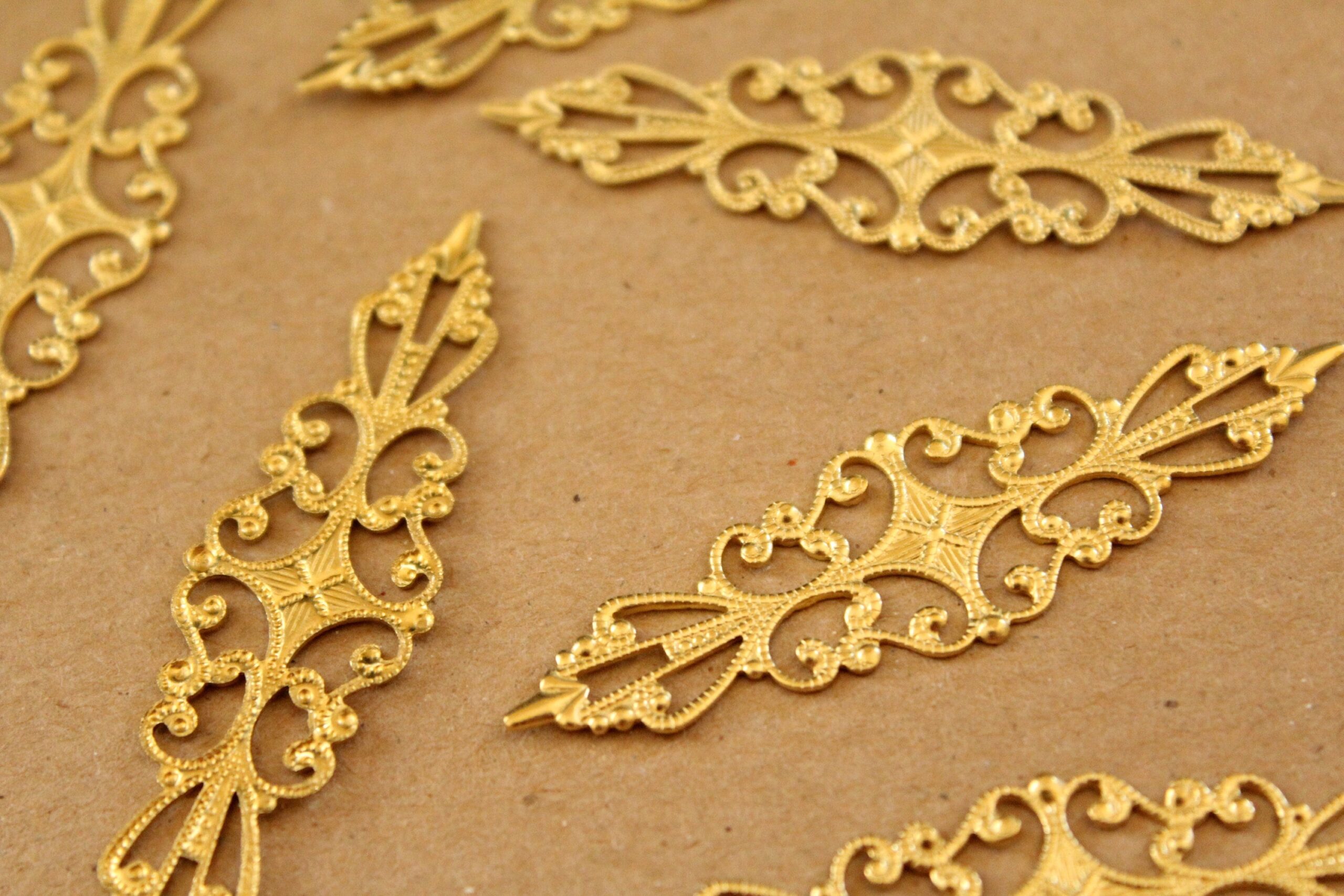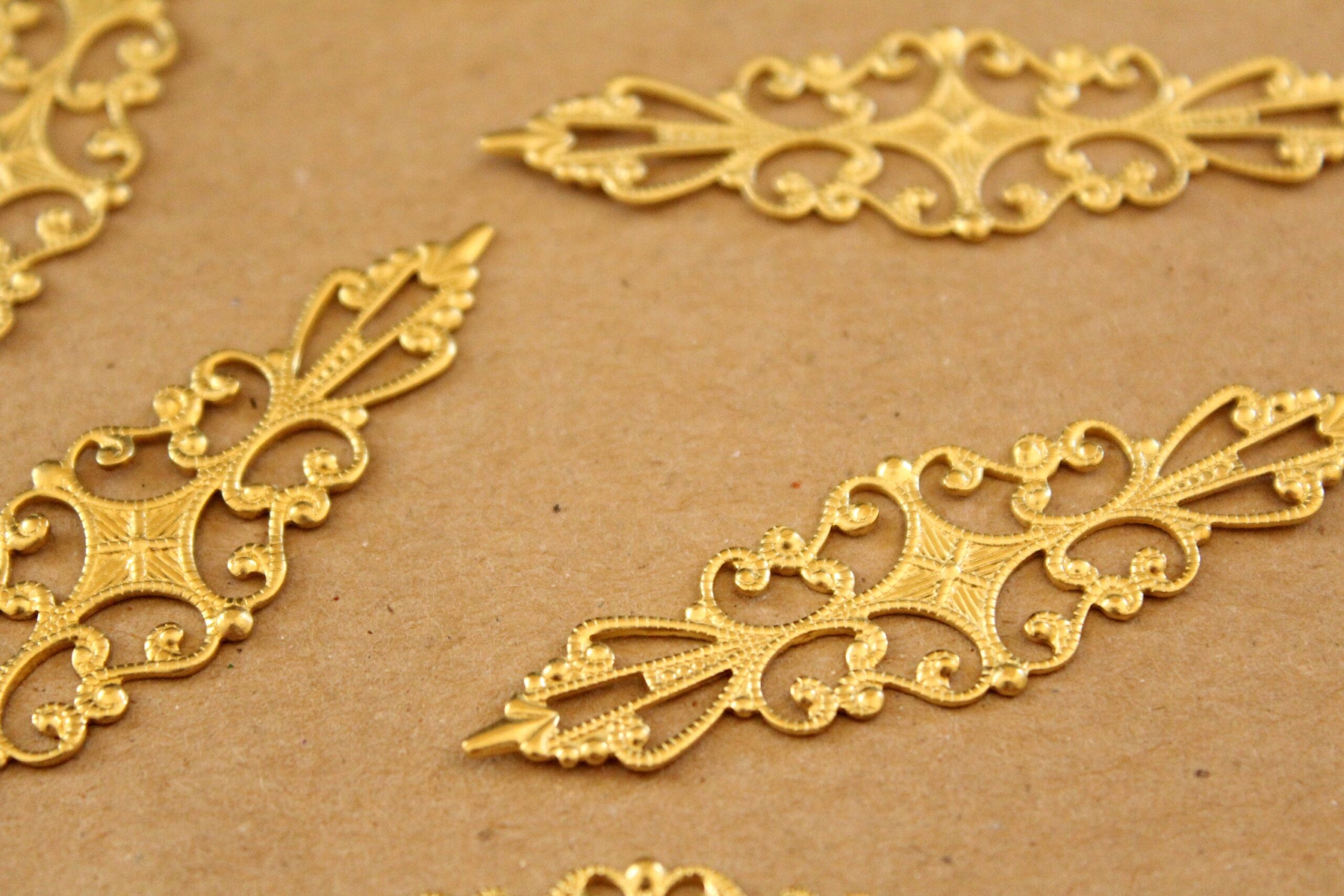 Raw brass filigree stampings. They could be bent to make rings They are lead and cadmium free.