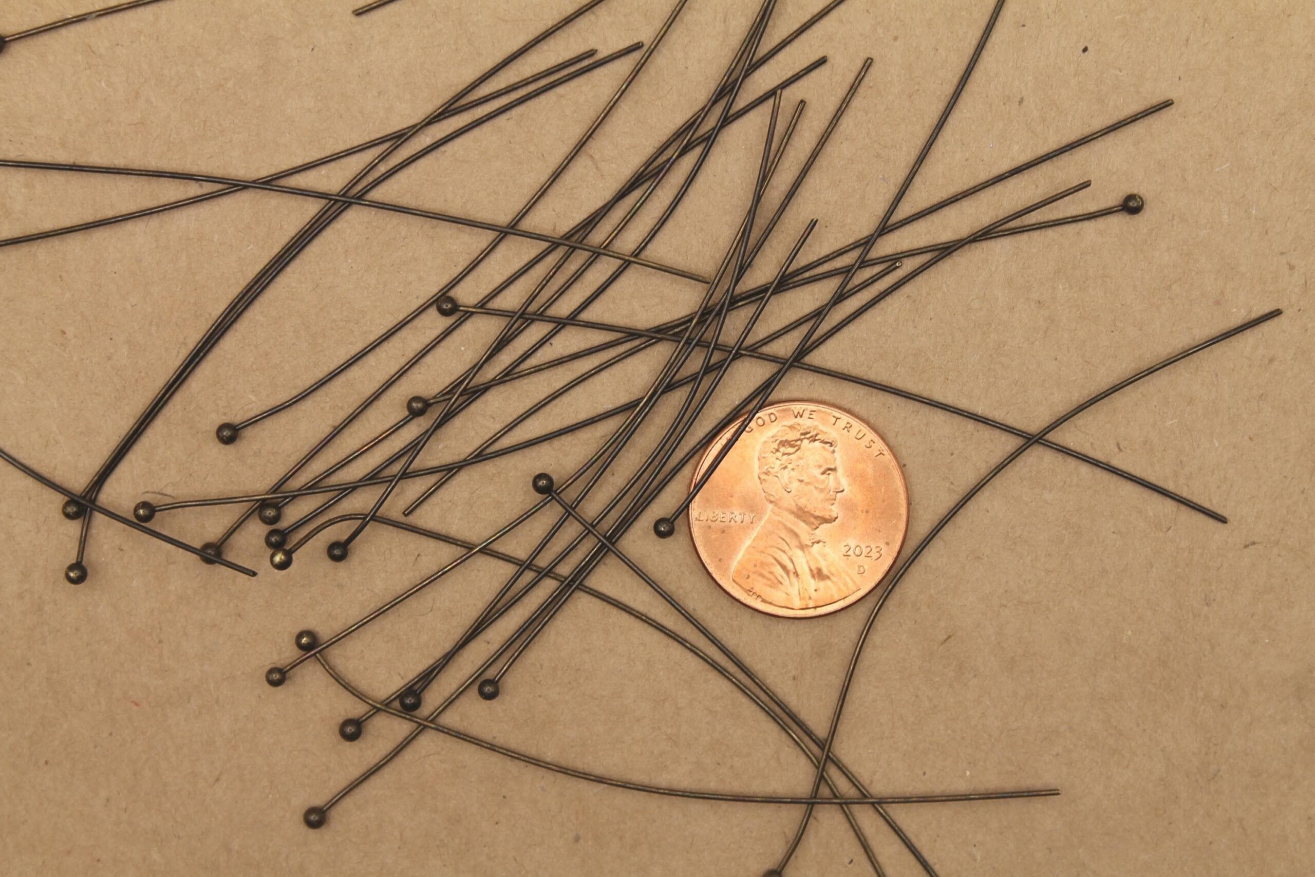 Ball End Headpins, Antique Brass Plated