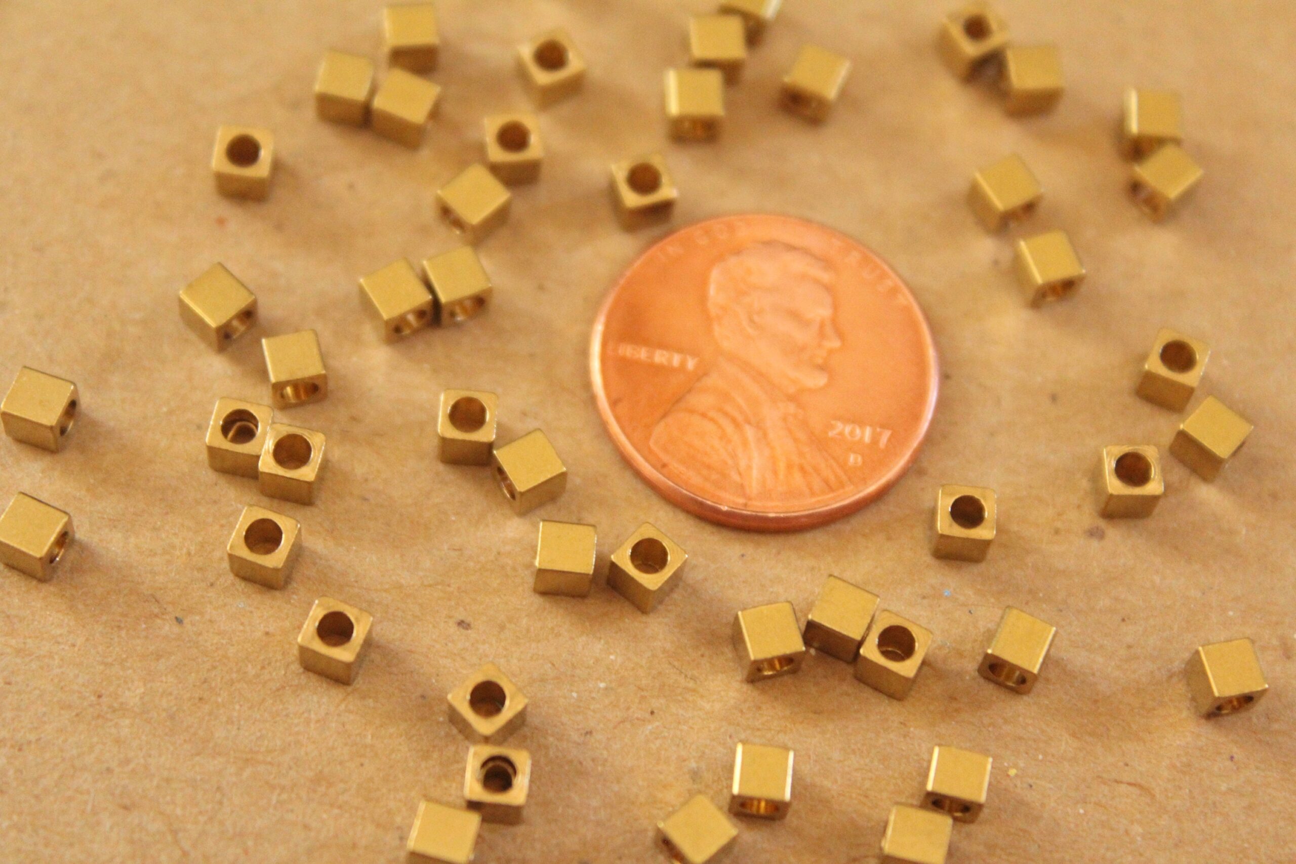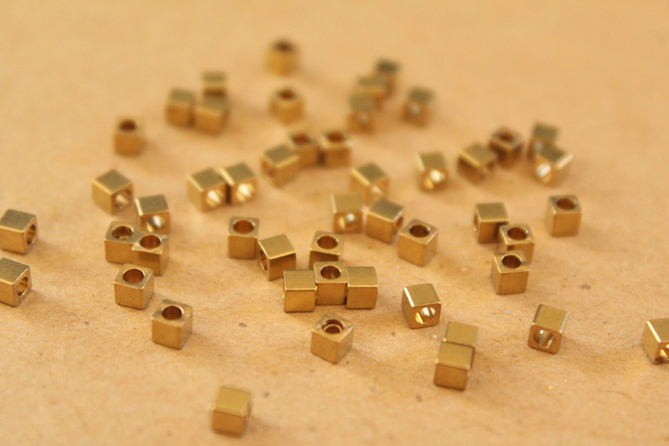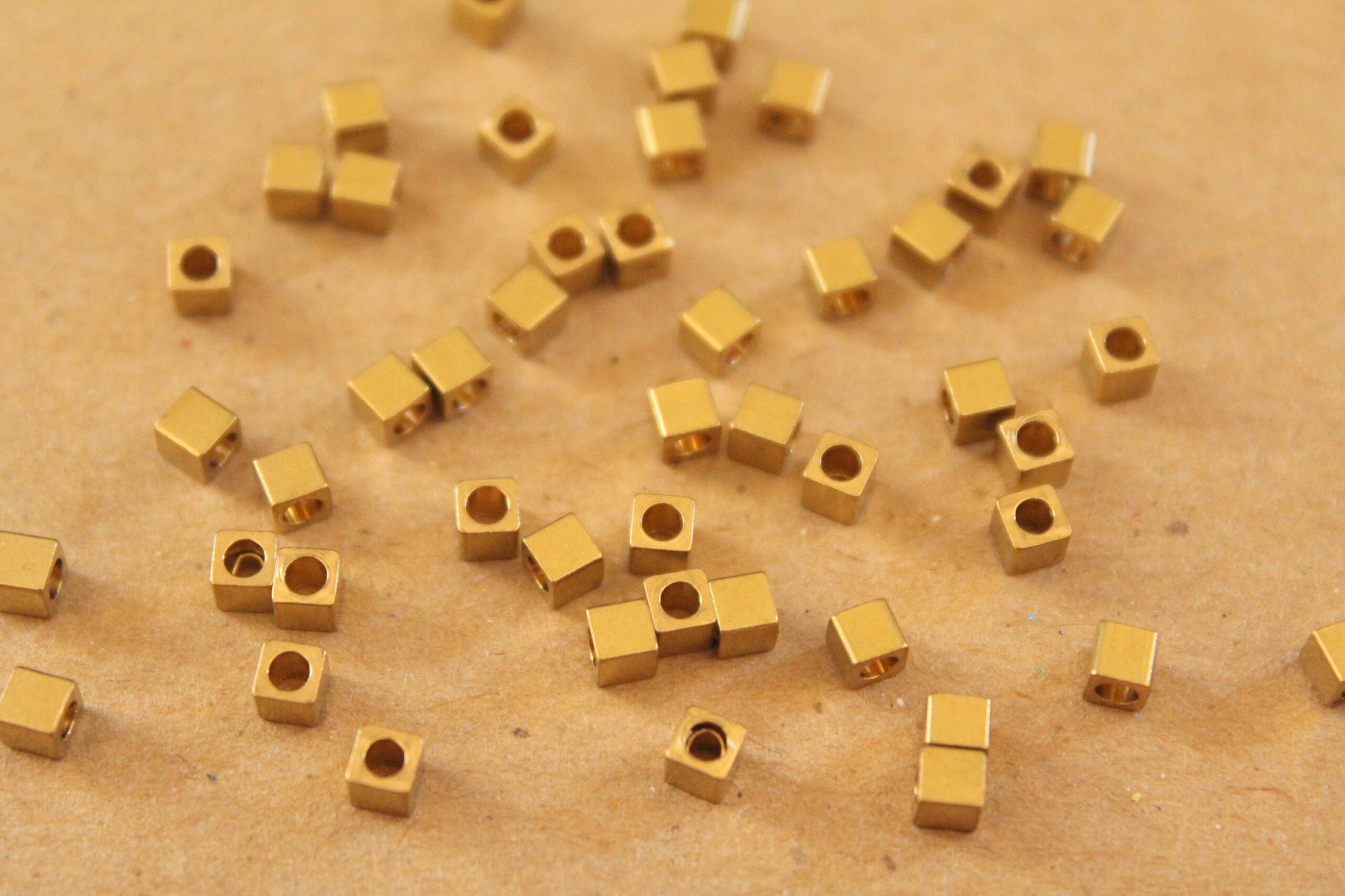 Tiny raw brass cube spacer beads, great for all kinds of projects.