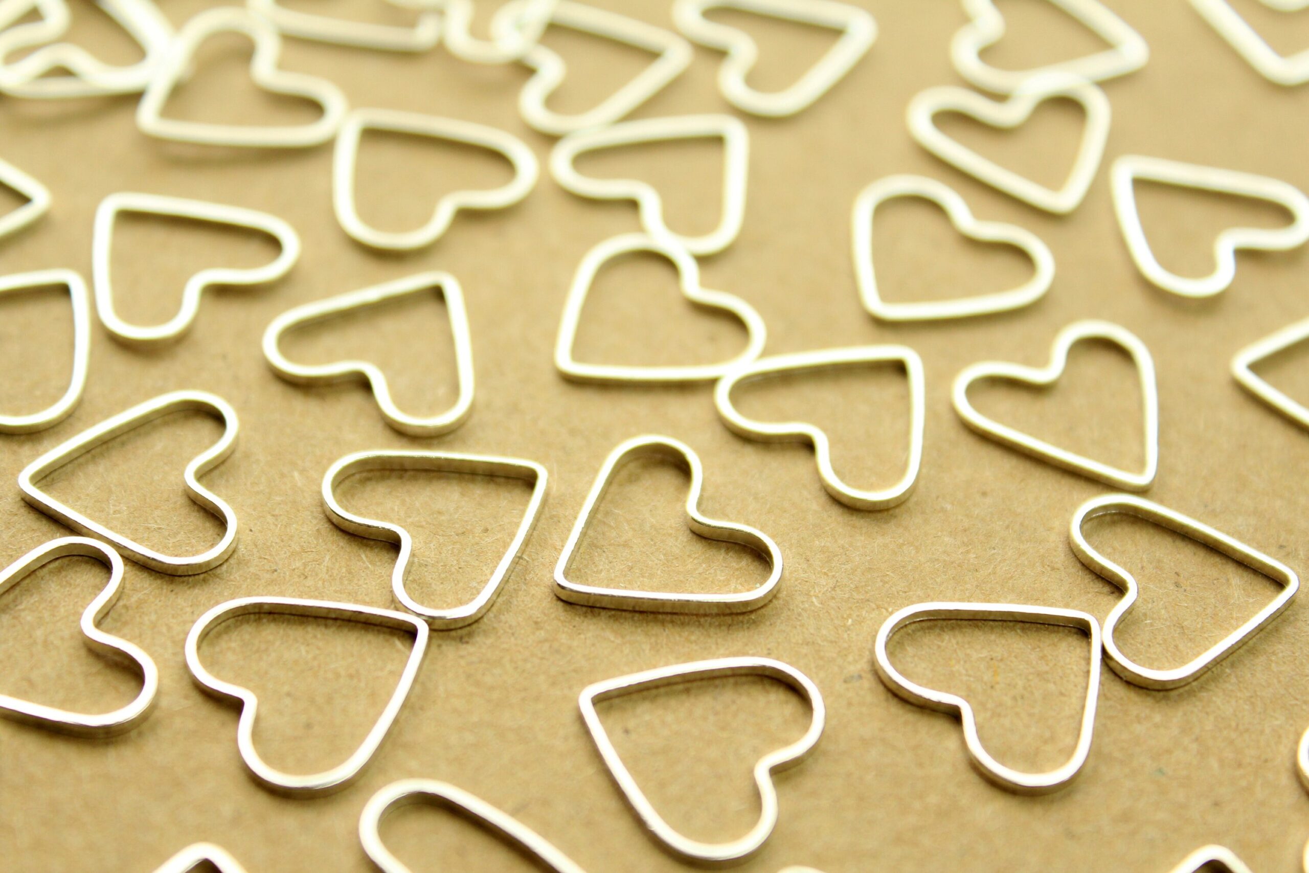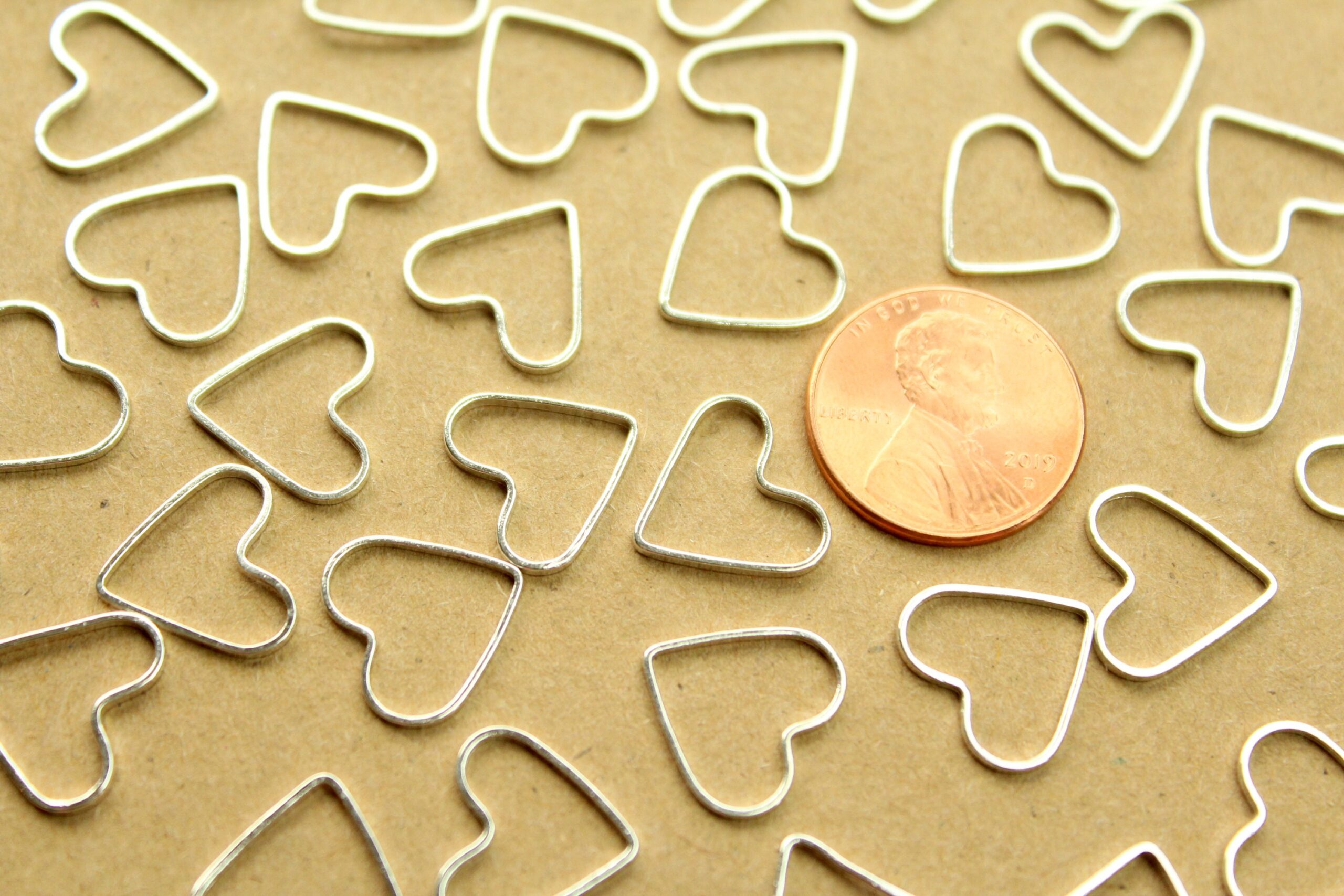 Silver plated brass heart links. These could be connected to make chain or used in a variety of other uses.