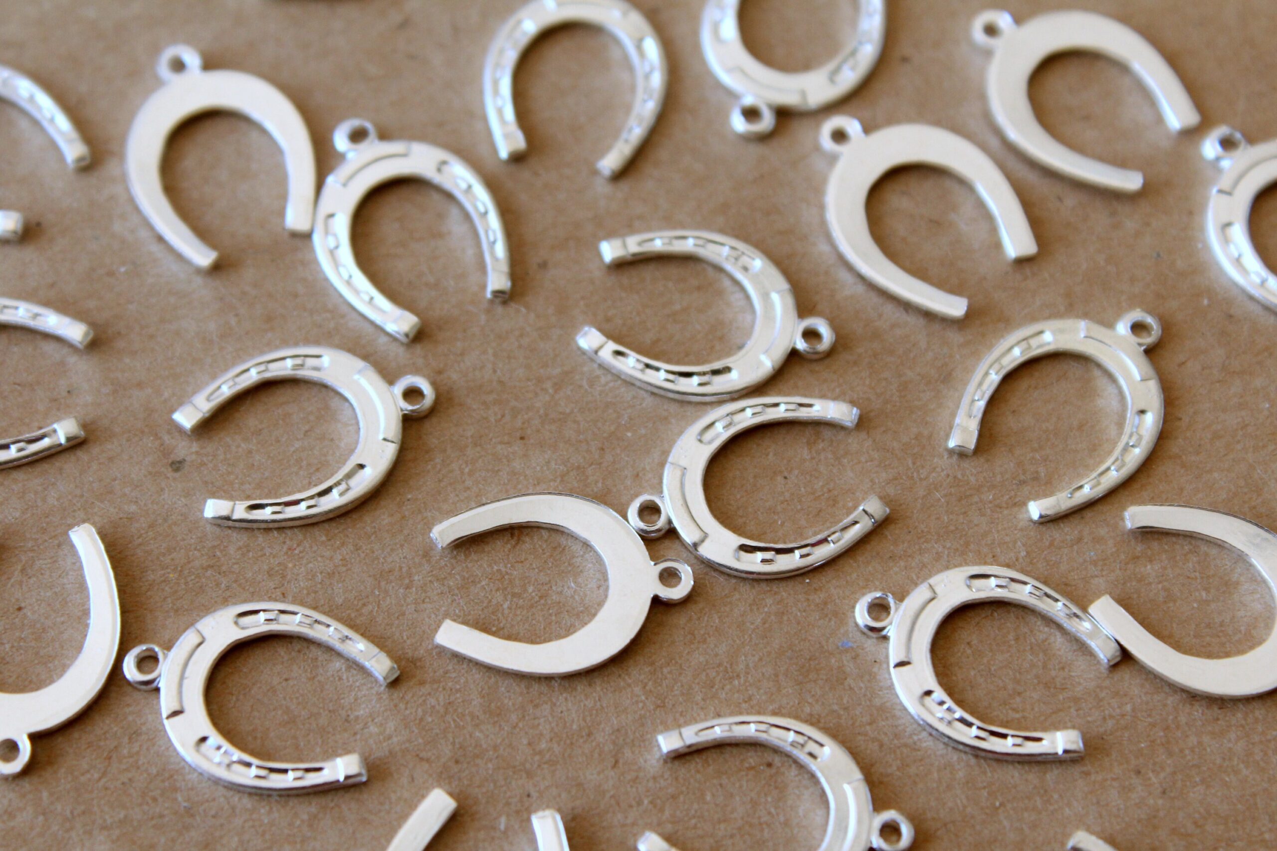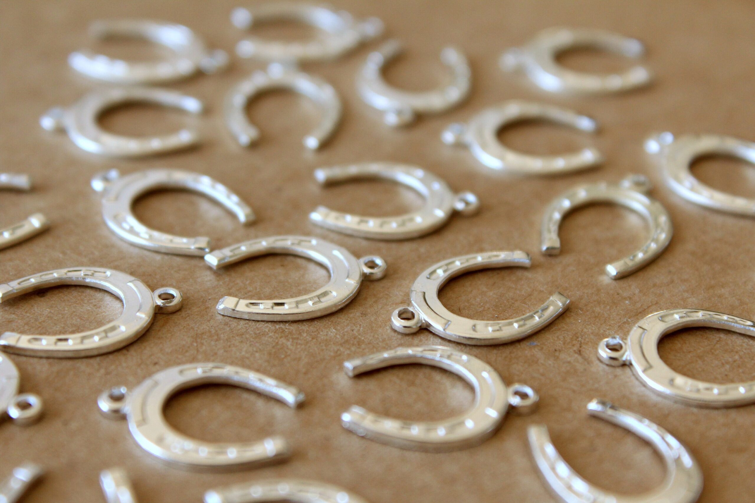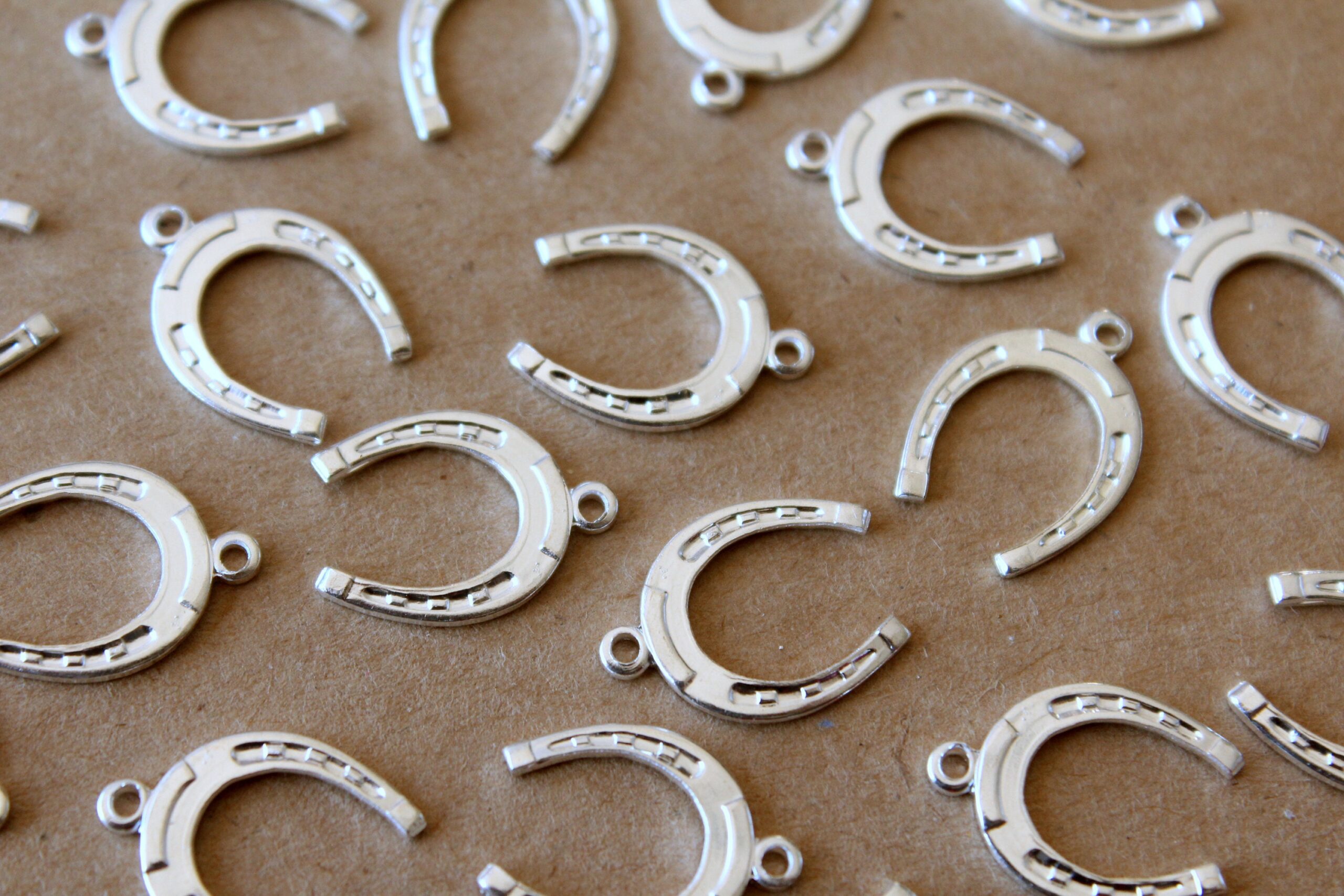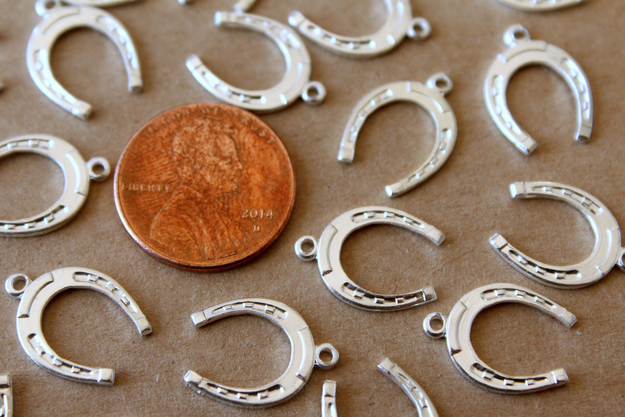 6 pc. Medium Silver Plated Brass Horseshoe Charms: 16mm by 11mm – made in USA | SI-087*