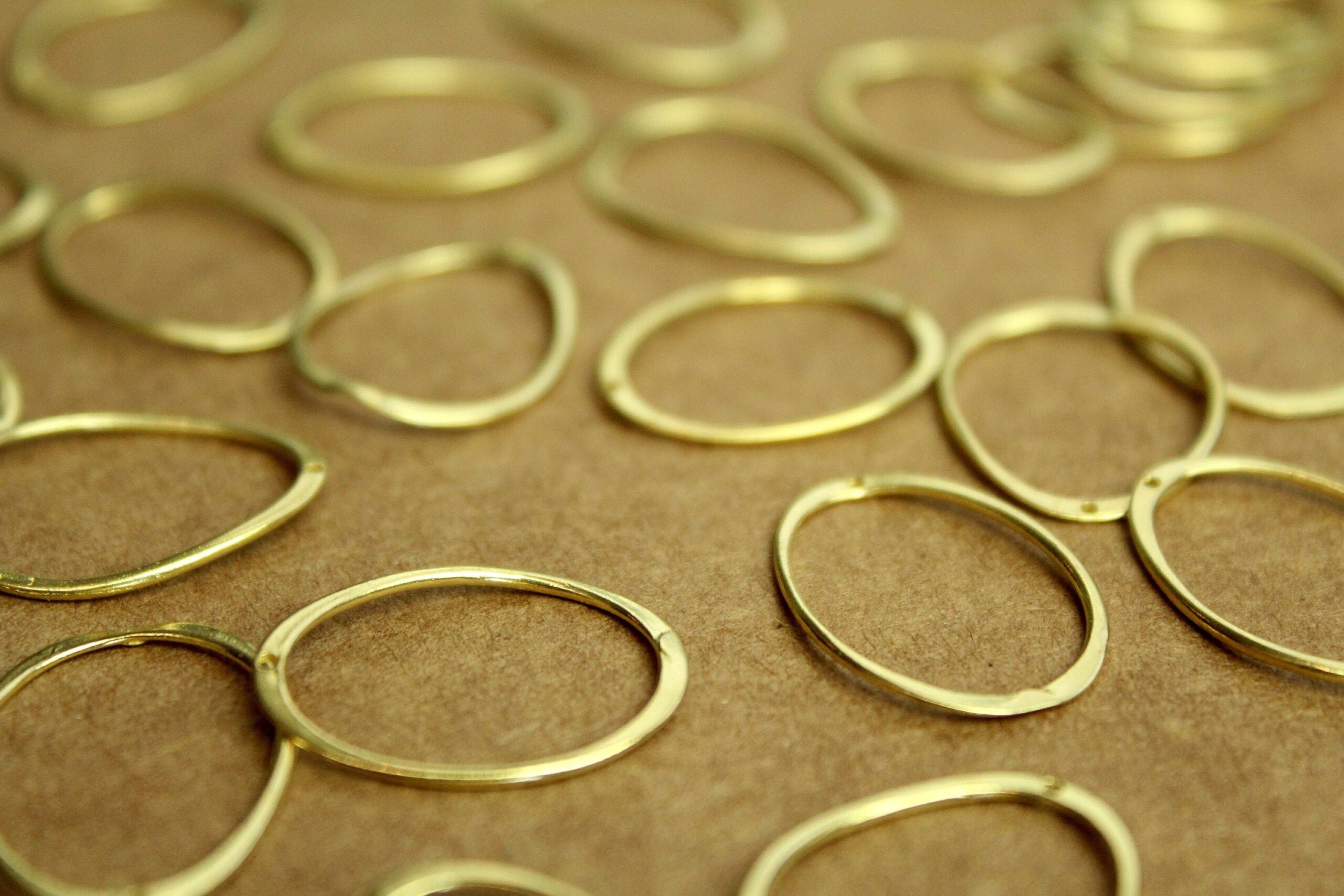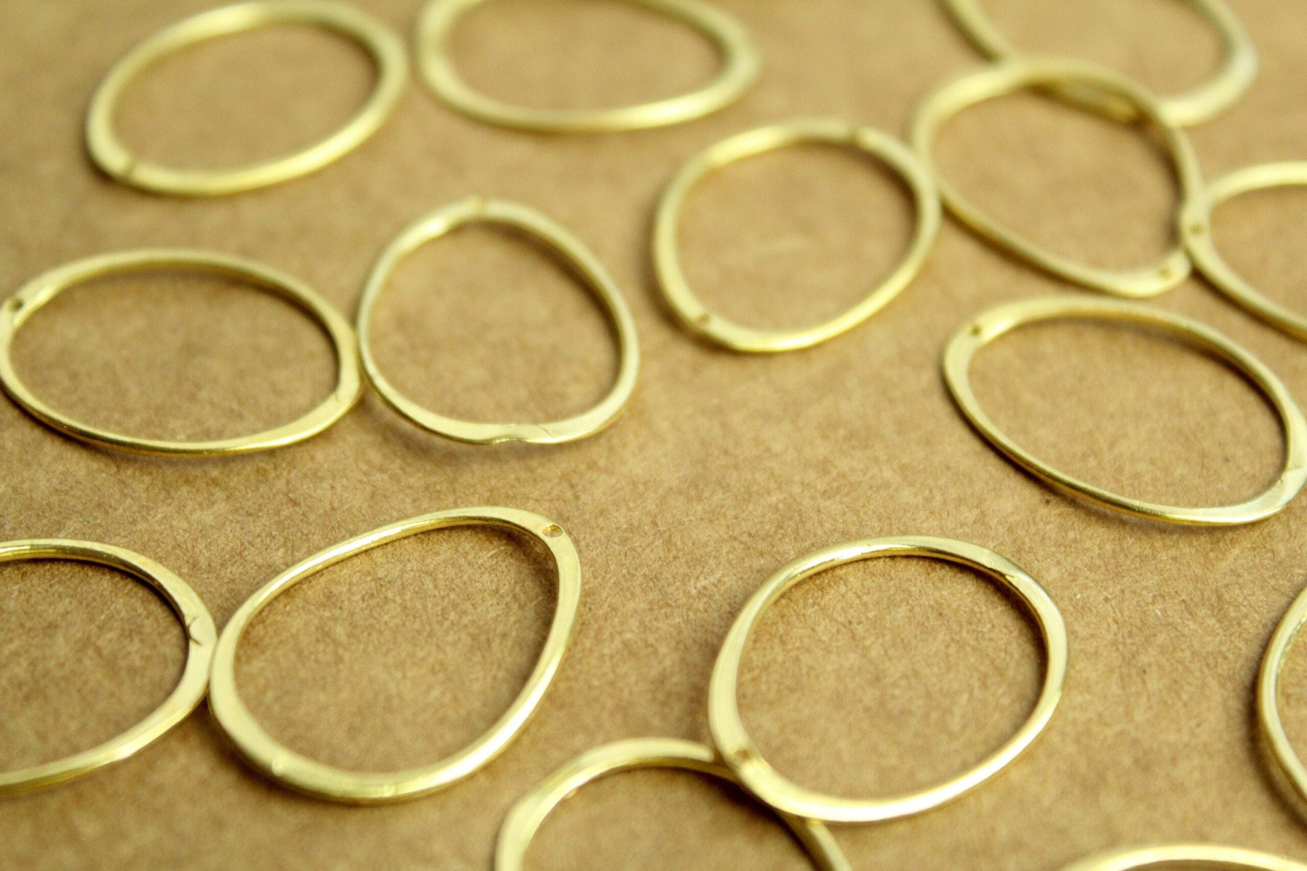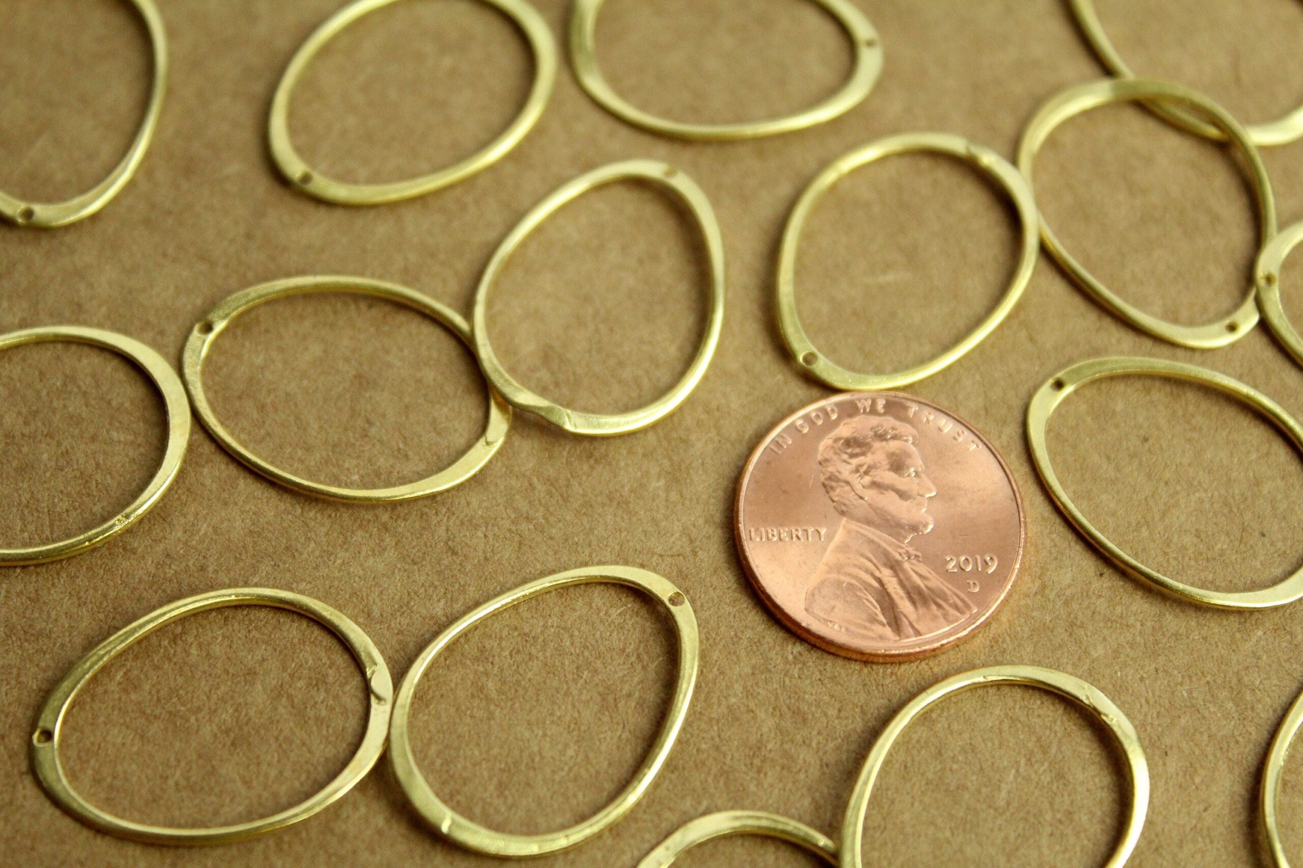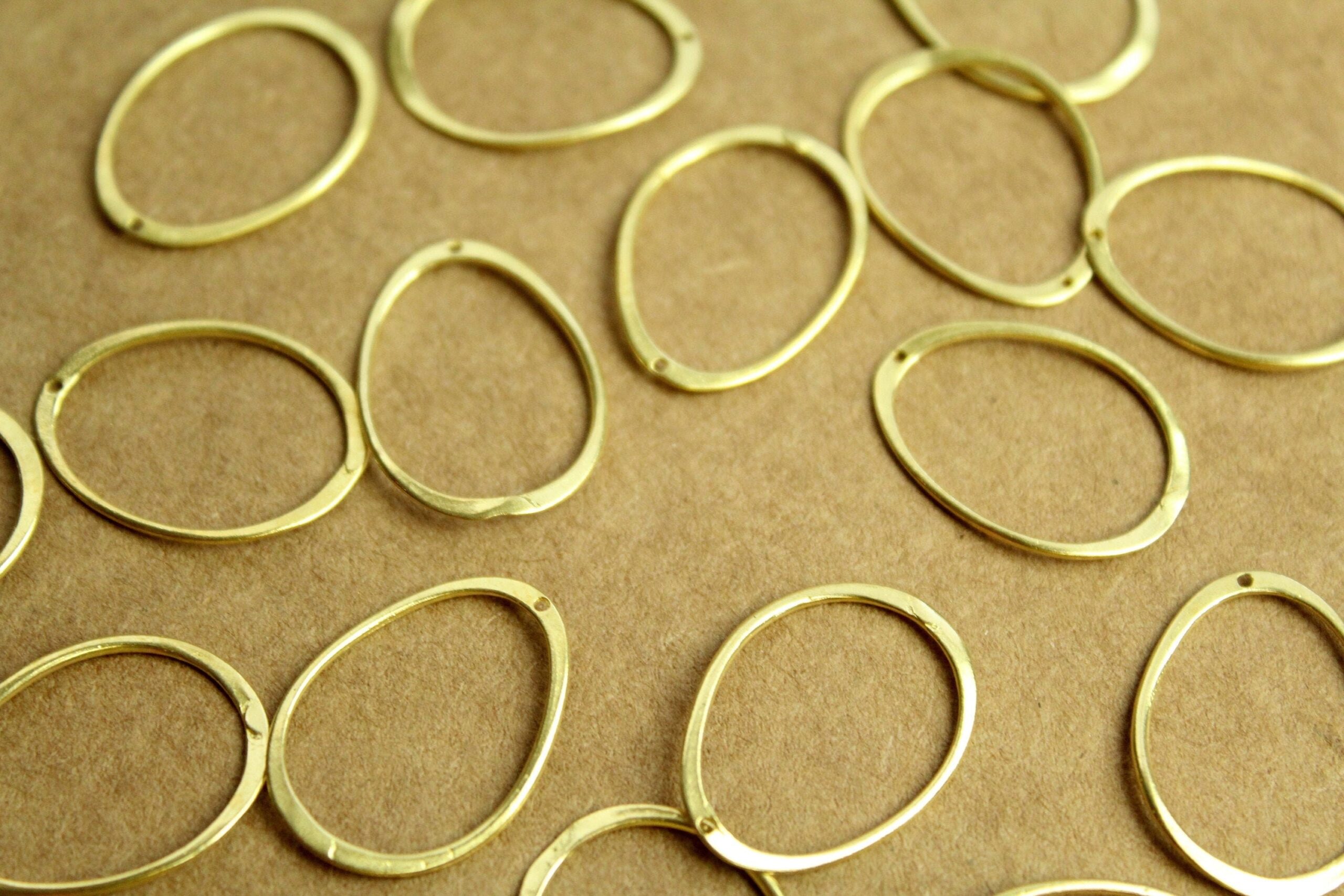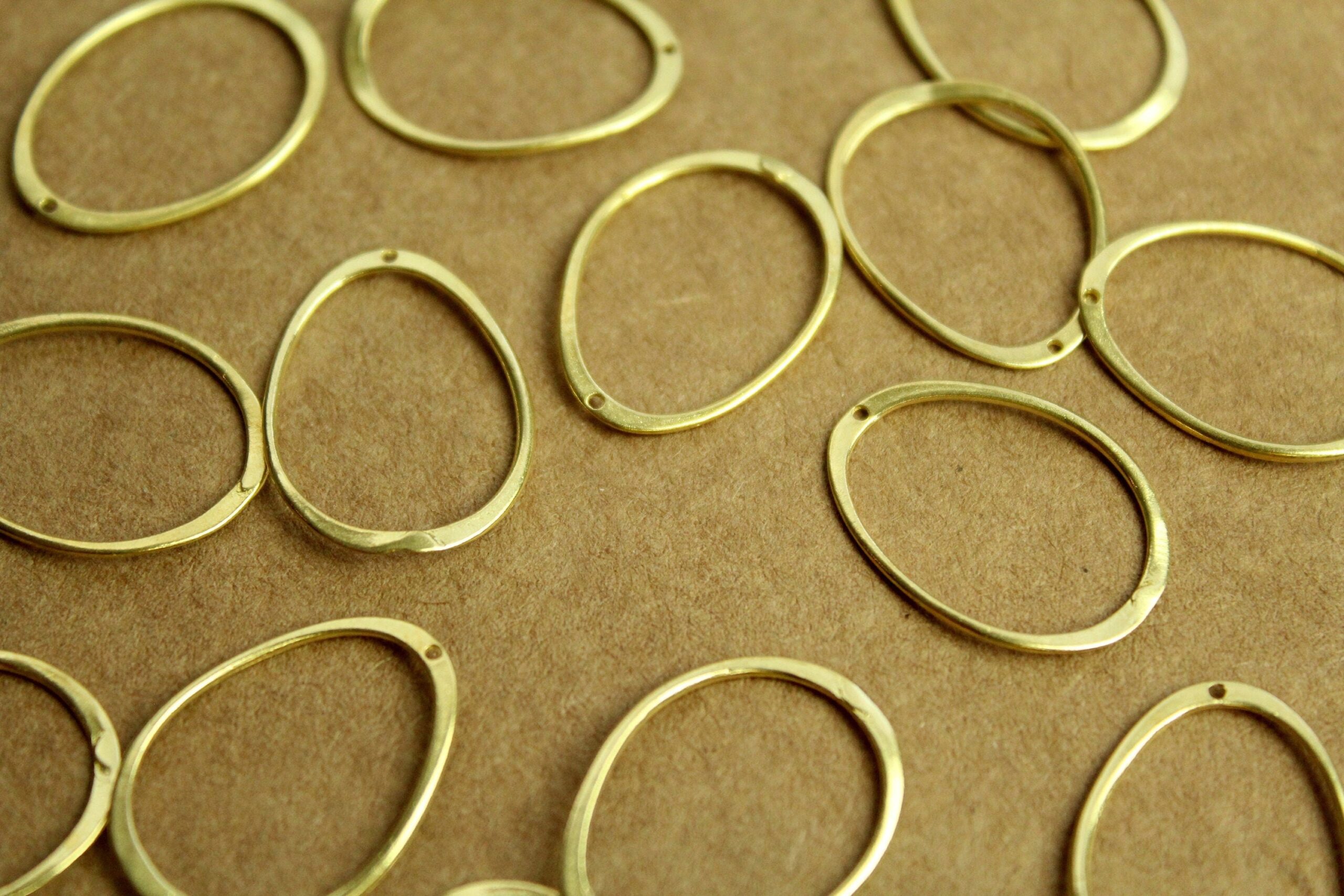 Raw, unplated brass wavy oval links. They have a small hole at the top for a jumpring. They are nickel, lead, and cadmium free.