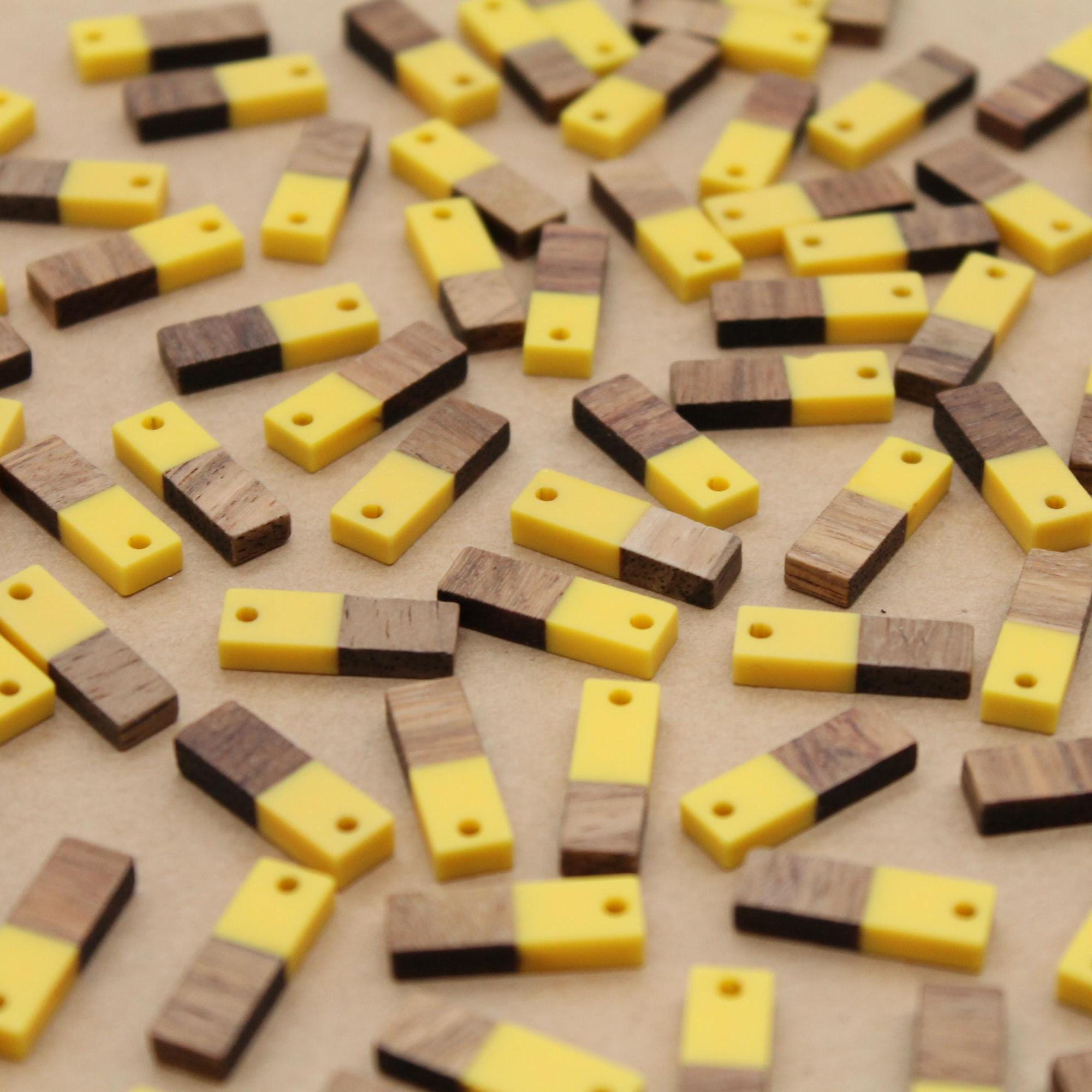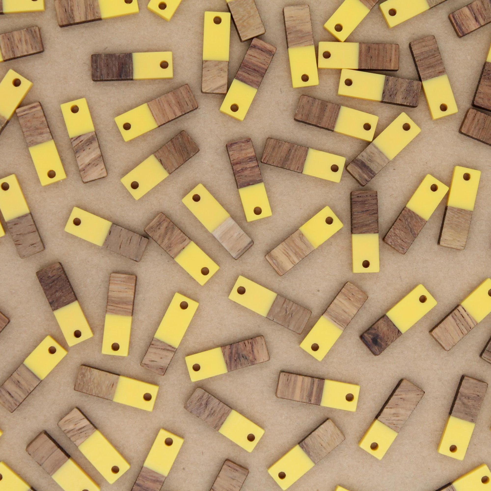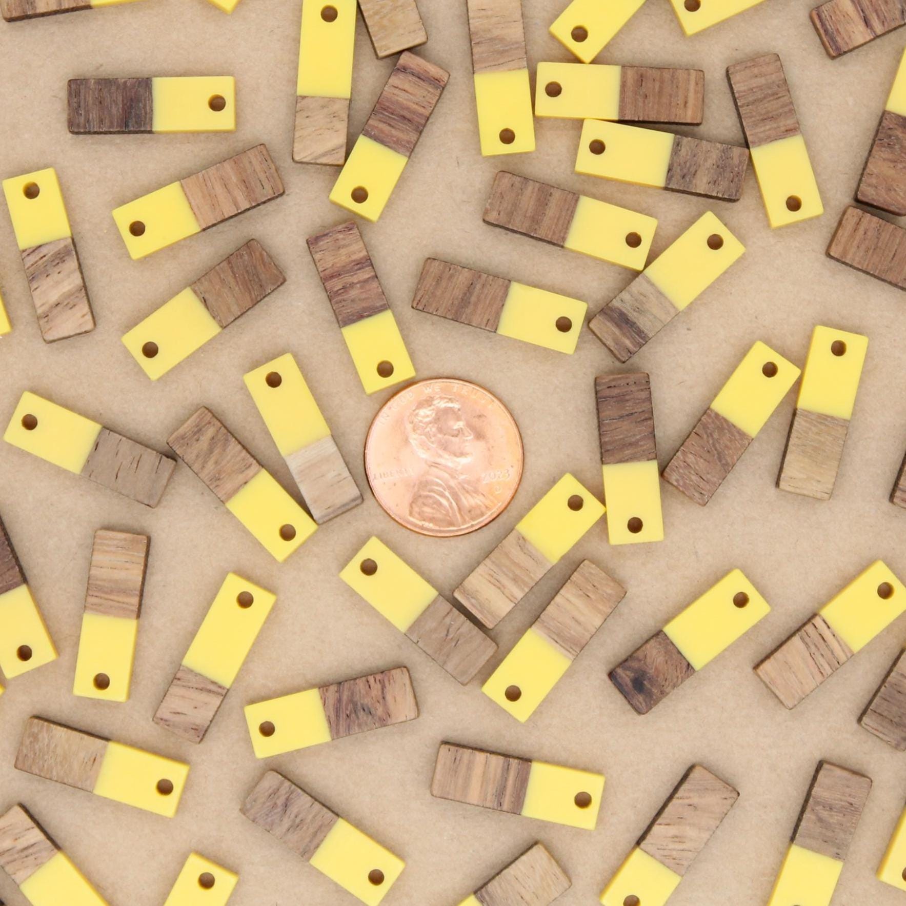 6 pc. Yellow Resin and Wood Rectangle Pendants, Multiple Colors Available, 20mm x 6.5mm | MIS-153*
