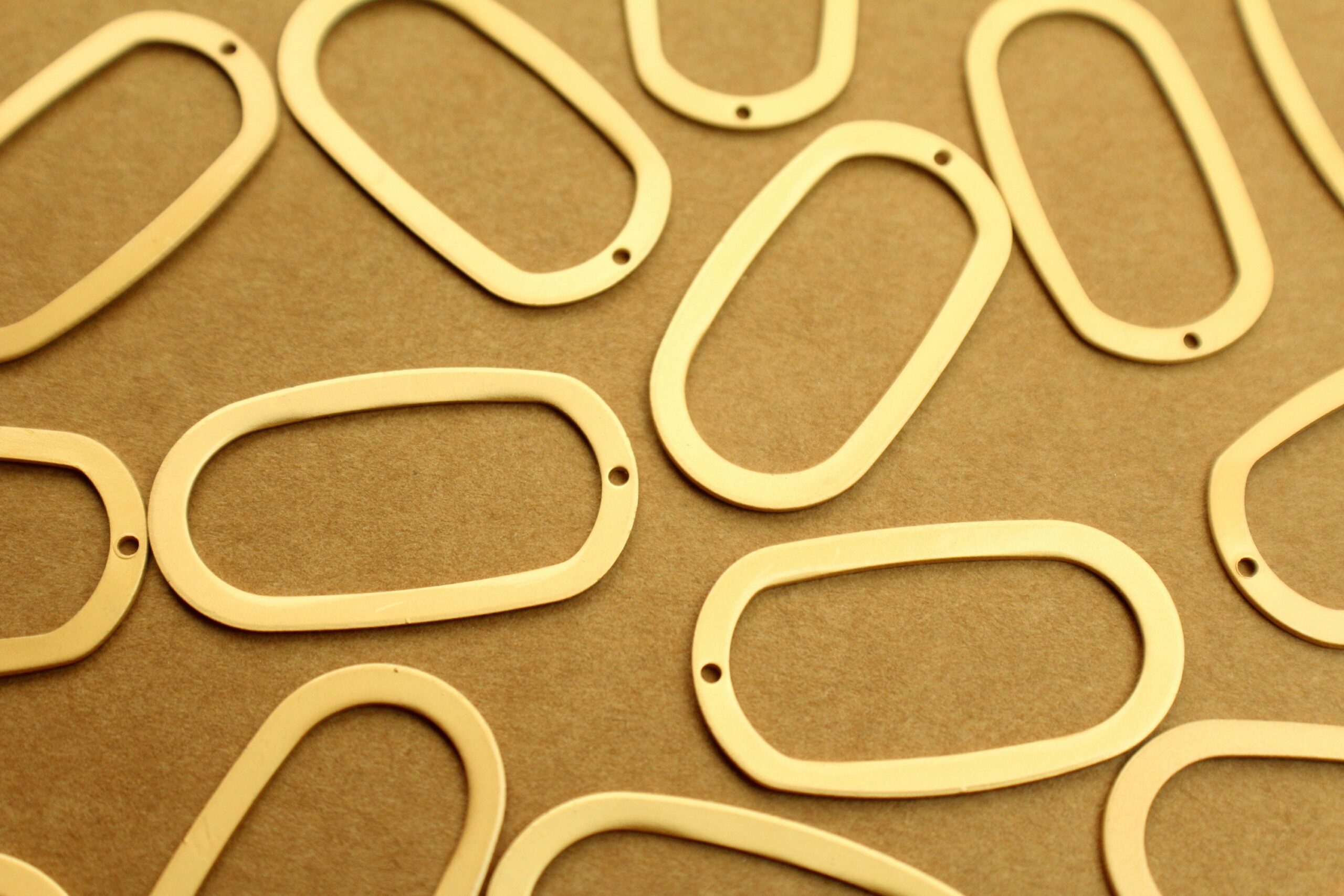 Gold oval ring. They have a small hole at the top for a jumpring.